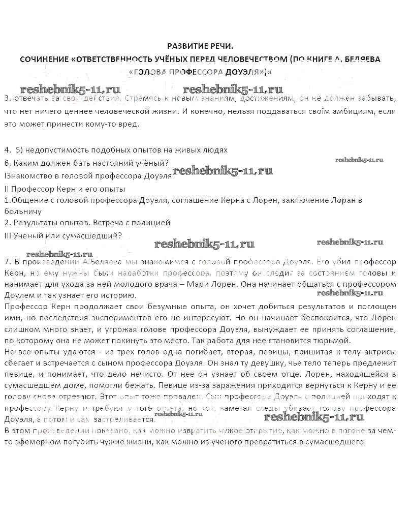 Решебник / тема / Развитие речи. Сочинение Ответственность учёных перед человечеством (по книге А. Беляева Голова профессора Доуэля)