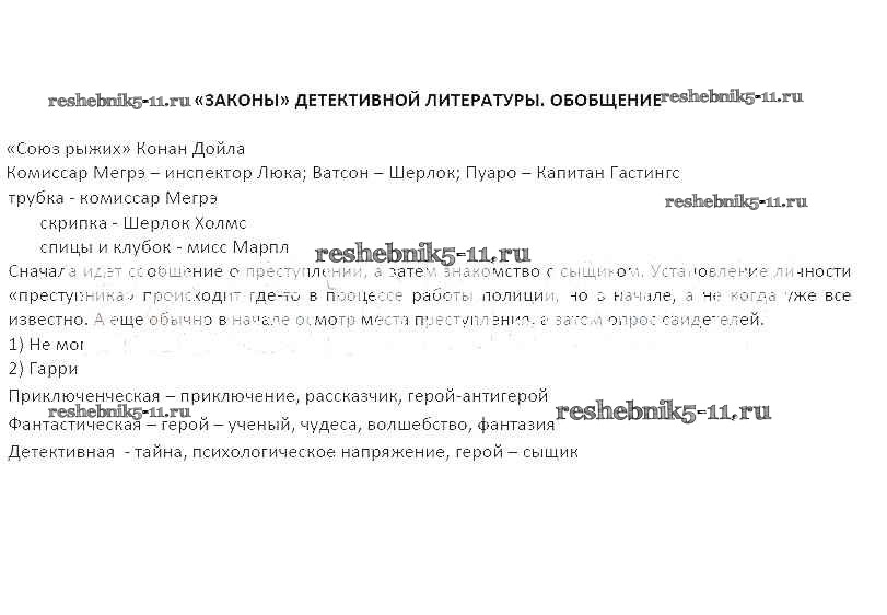 Готовая домашняя работа с ответами по Литературе за 5 класс Бунеев, Чиндилова, Бунеева Рабочая тетрадь Школа 2100 Баласс 2014 ФГОС - Темы Законы детективной литературы. Обобщение
