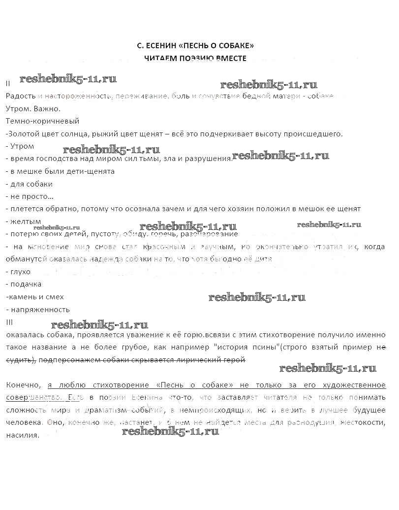 Готовая домашняя работа с ответами по Литературе за 5 класс Бунеев, Чиндилова, Бунеева Рабочая тетрадь Школа 2100 Баласс 2014 ФГОС - Темы С. Есенин. Песнь о собаке. Читаем поэзию вместе