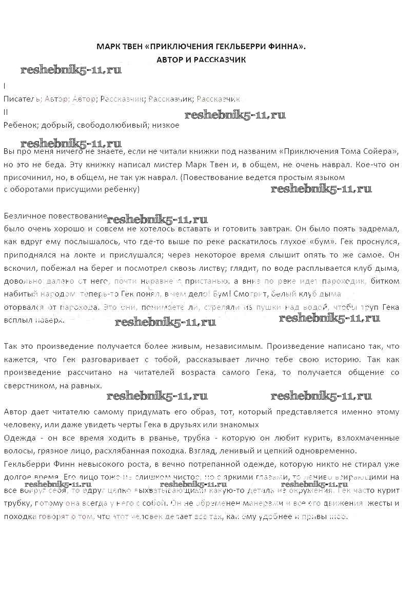 Решебник / тема / Марк Твен. Приключения Гекльберри Финна. Автор и рассказчик