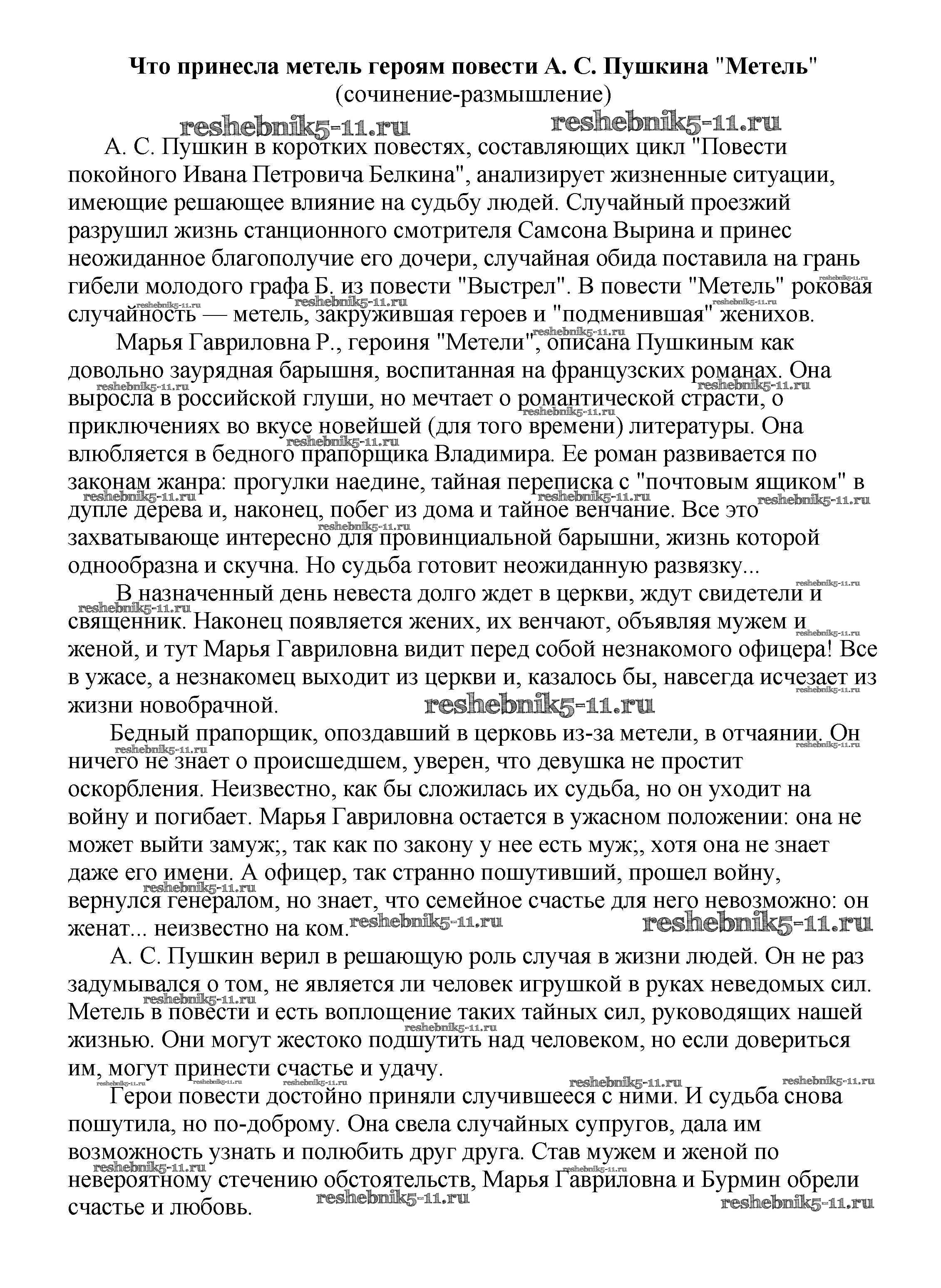 Готовая домашняя работа с ответами по Литературе за 5, 6, 7, 8, 9, 10 класс Белик, Музычук Сочинения Баро-Пресс 2017 - Сочинения по русской литературе Что принесла метель героям повести А. С. Пушкина "Метель" (сочинение-размышление)