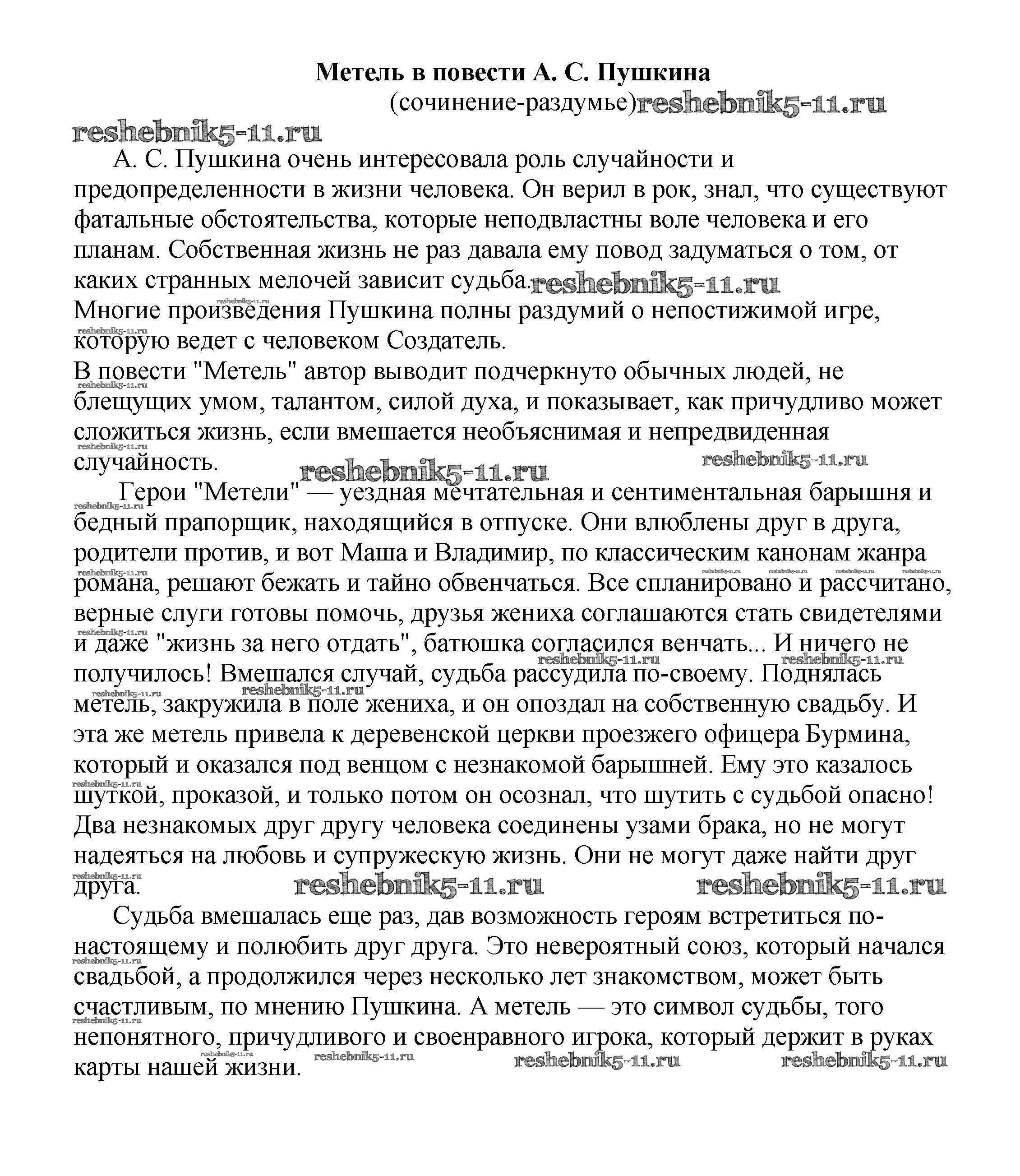 Решебник / 6 класс / сочинения по русской литературе / Метель в повести А. С. Пушкина (сочинение-раздумье)
