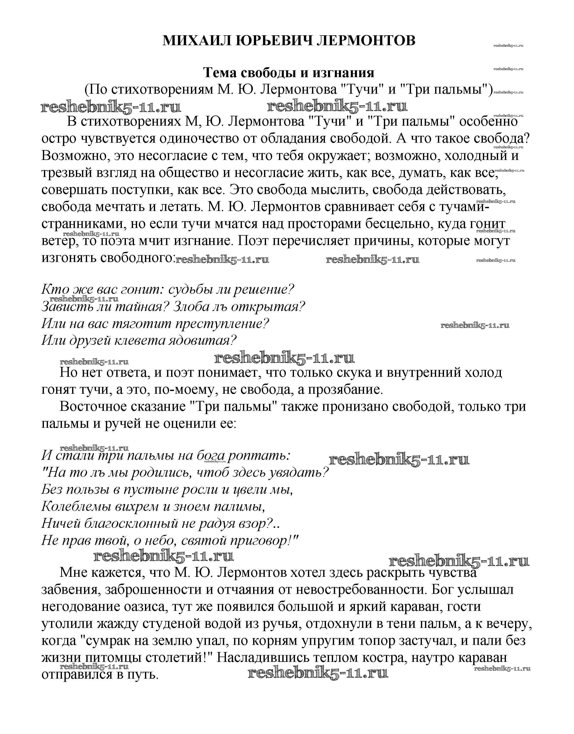 Готовая домашняя работа с ответами по Литературе за 5, 6, 7, 8, 9, 10 класс Белик, Музычук Сочинения Баро-Пресс 2017 - Сочинения по русской литературе Тема свободы и изгнания (По стихотворениям М. Ю. Лермонтова "Тучи" и "Три пальмы")