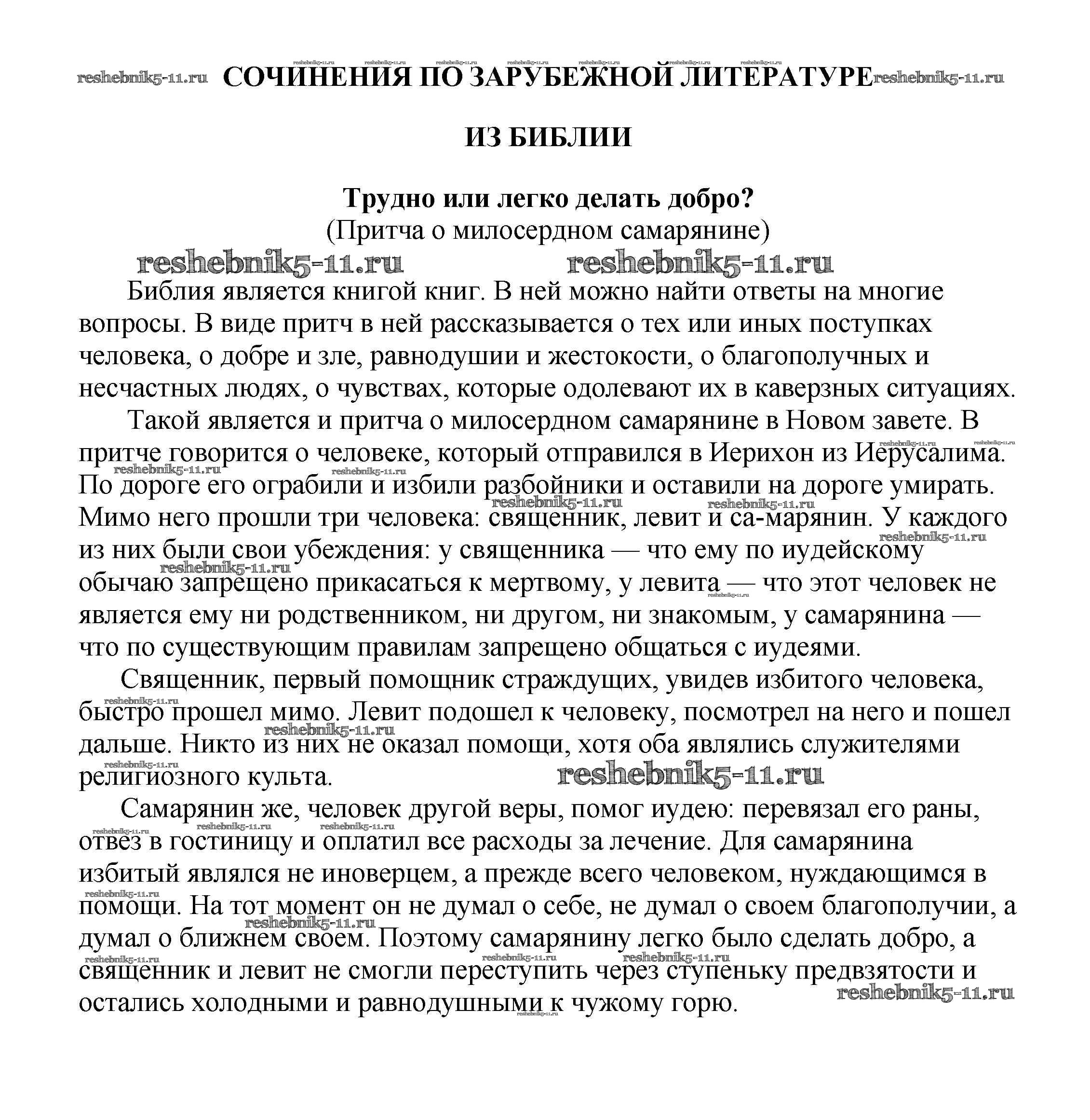 Готовая домашняя работа с ответами по Литературе за 5, 6, 7, 8, 9, 10 класс Белик, Музычук Сочинения Баро-Пресс 2017 - Сочинения по зарубежной литературе Трудно или легко делать добро? (Притча о милосердном самарянине)