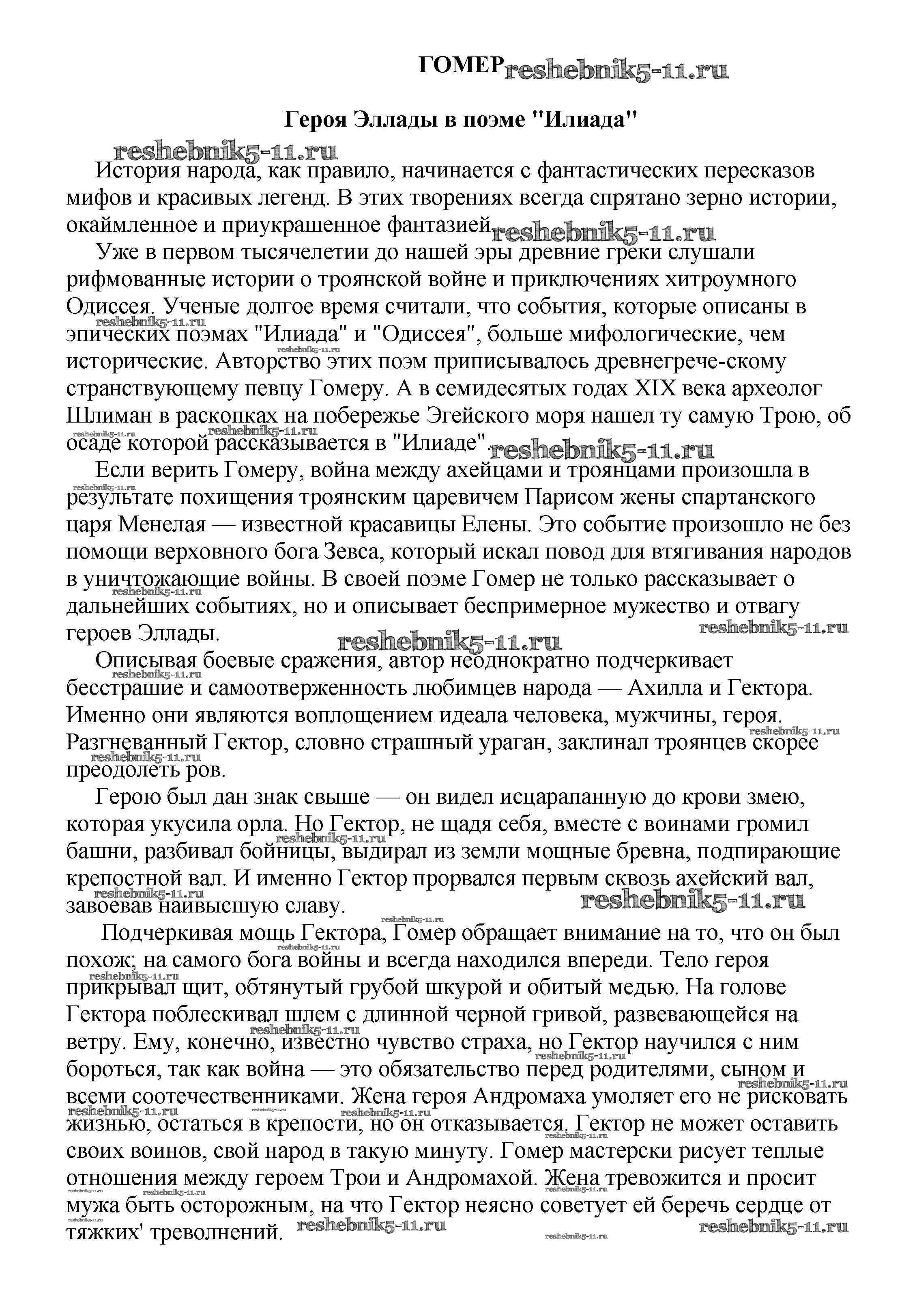 Готовая домашняя работа с ответами по Литературе за 5, 6, 7, 8, 9, 10 класс Белик, Музычук Сочинения Баро-Пресс 2017 - Сочинения по зарубежной литературе Героя Эллады в поэме "Илиада"