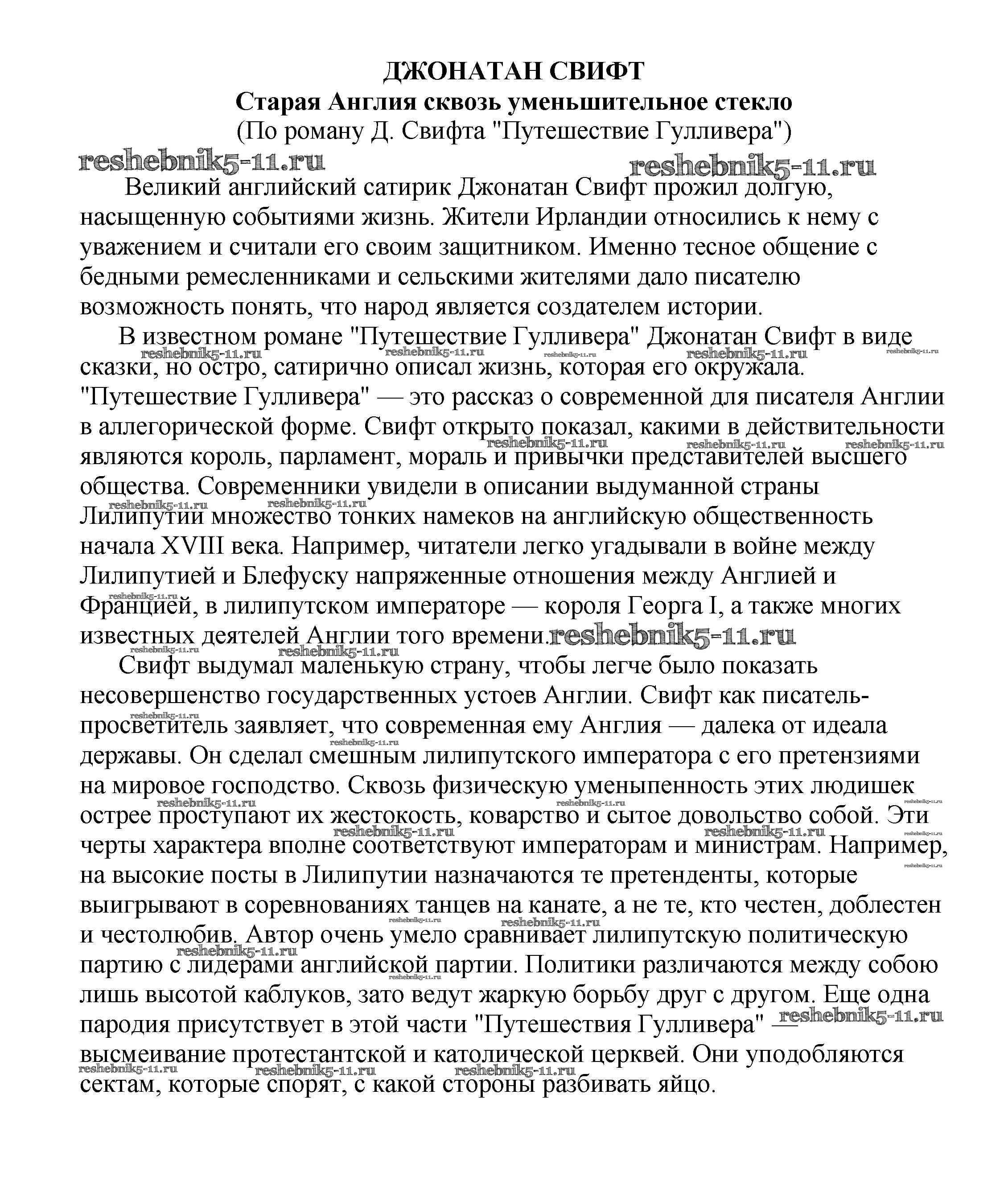 Готовая домашняя работа с ответами по Литературе за 5, 6, 7, 8, 9, 10 класс Белик, Музычук Сочинения Баро-Пресс 2017 - Сочинения по зарубежной литературе Старая Англия сквозь уменьшительное стекло (По роману Д. Свифта "Путешествие Гулливера")