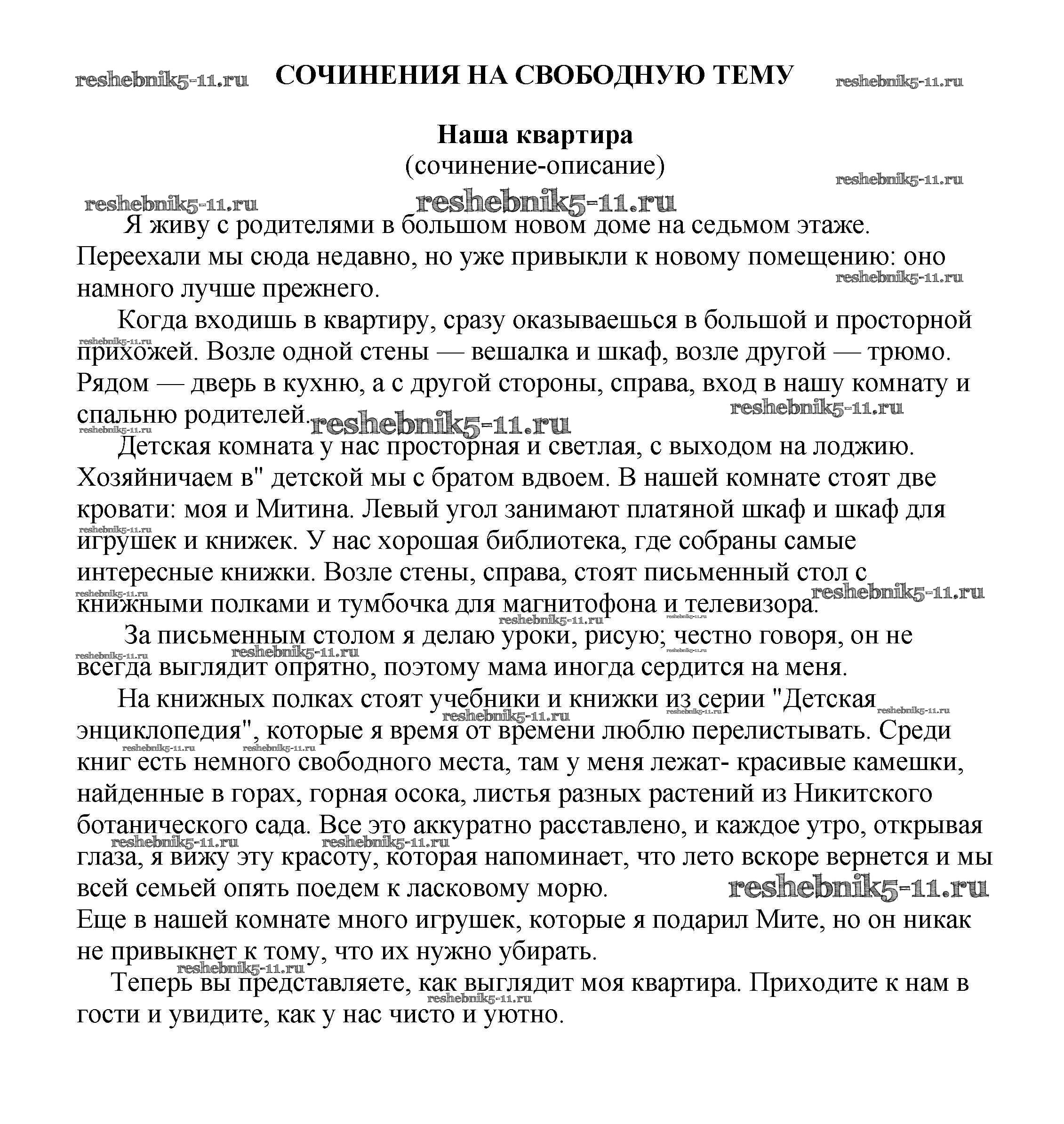 Готовая домашняя работа с ответами по Литературе за 5, 6, 7, 8, 9, 10 класс Белик, Музычук Сочинения Баро-Пресс 2017 - Сочинения на свободную тему Наша квартира (сочинение-описание)