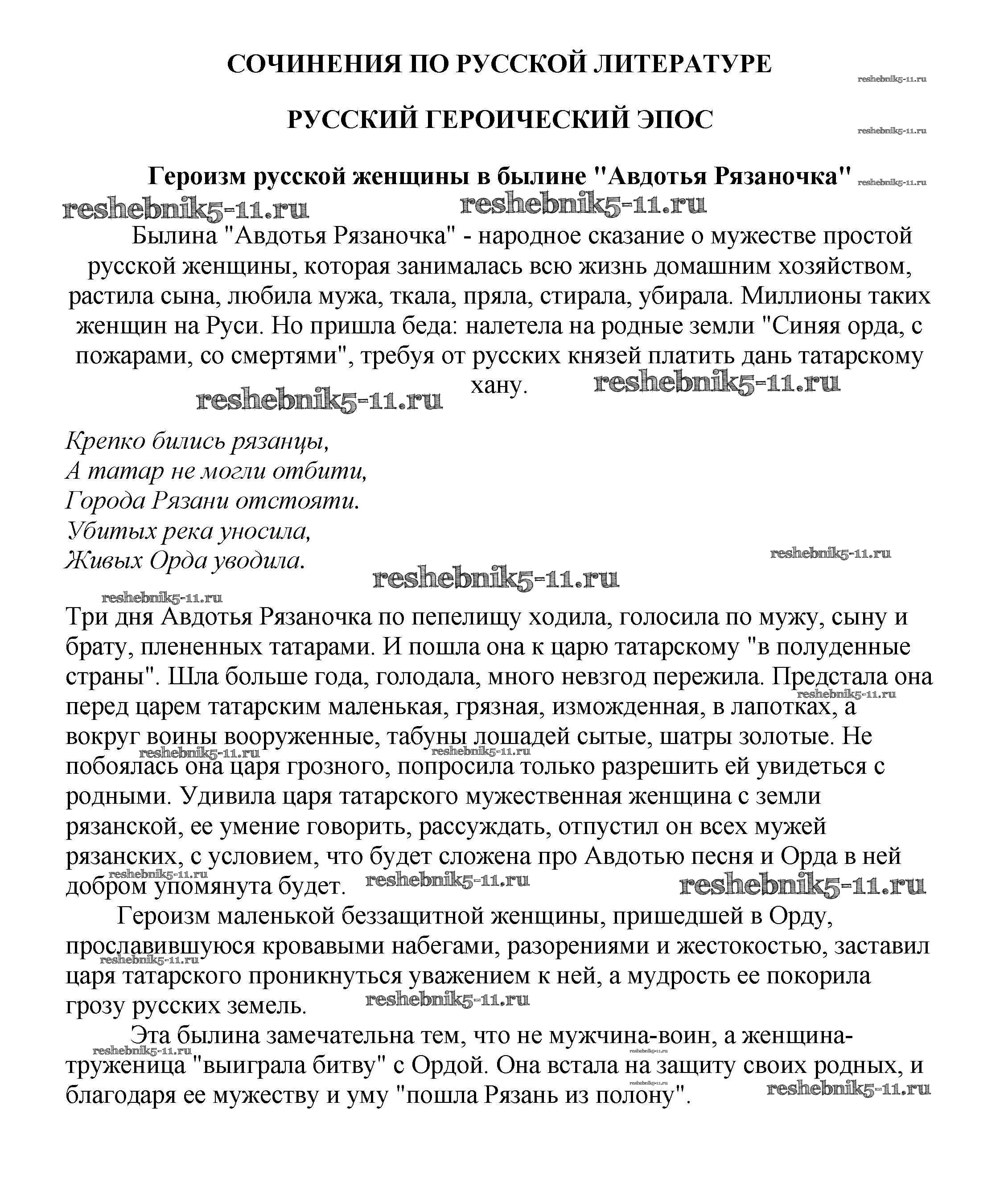 Готовая домашняя работа с ответами по Литературе за 5, 6, 7, 8, 9, 10 класс Белик, Музычук Сочинения Баро-Пресс 2017 - Сочинения по русской литературе Героизм русской женщины в былине "Авдотья Рязаночка"