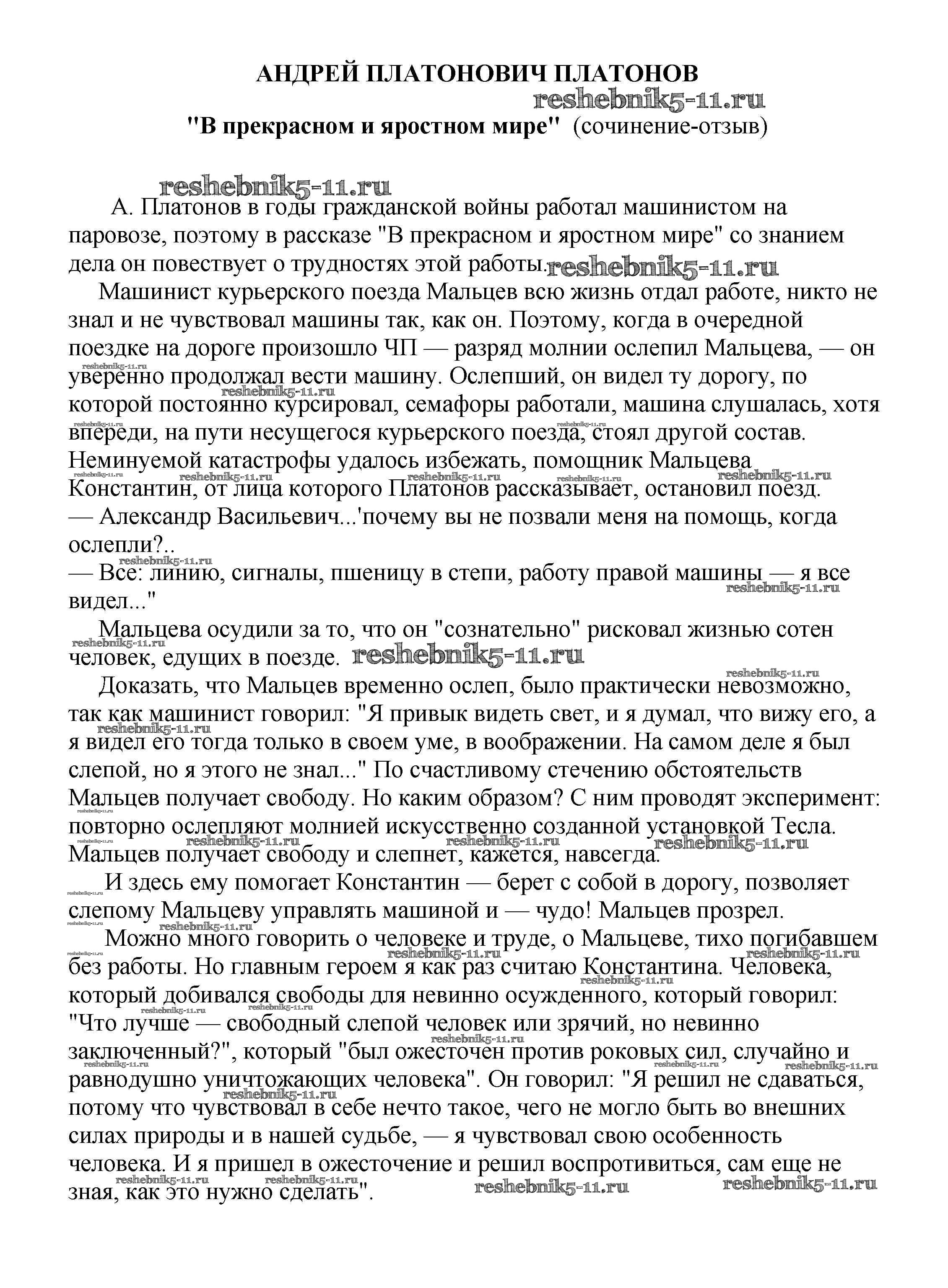 Готовая домашняя работа с ответами по Литературе за 5, 6, 7, 8, 9, 10 класс Белик, Музычук Сочинения Баро-Пресс 2017 - Сочинения по русской литературе "В прекрасном и яростном мире" (сочинение-отзыв)