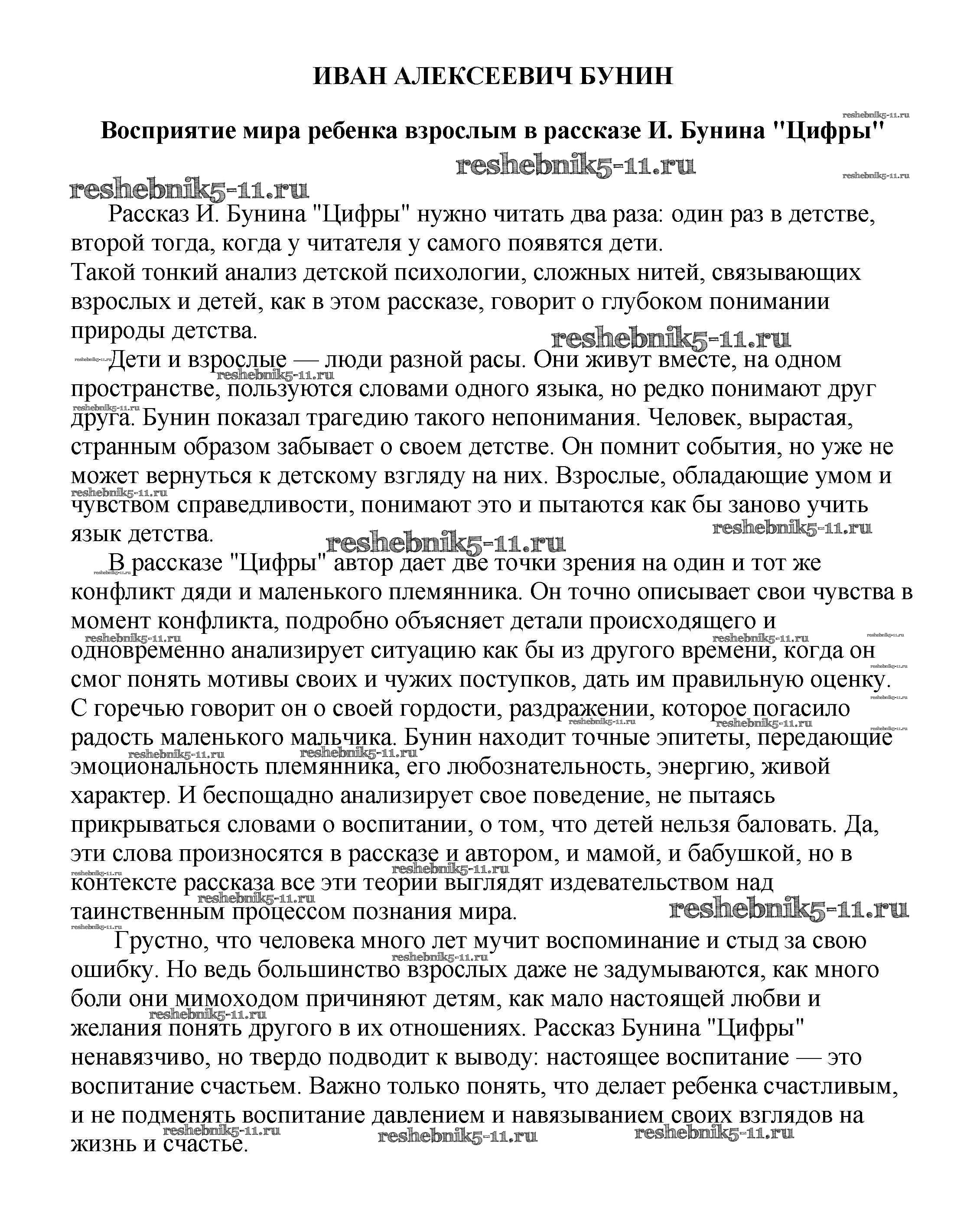 Готовая домашняя работа с ответами по Литературе за 5, 6, 7, 8, 9, 10 класс Белик, Музычук Сочинения Баро-Пресс 2017 - Сочинения по русской литературе Восприятие мира ребенка взрослым в рассказе И. Бунина "Цифры"