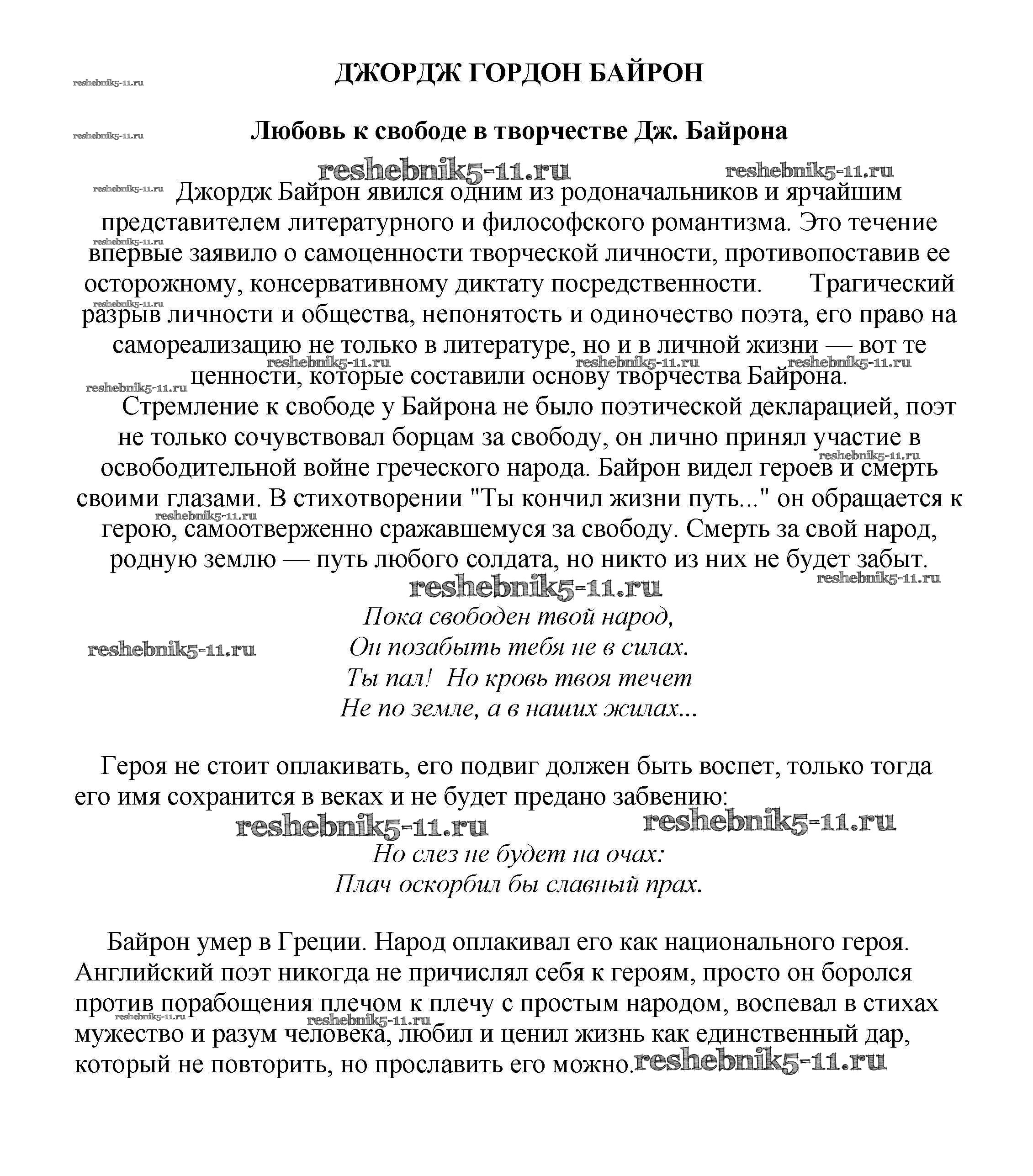 Готовая домашняя работа с ответами по Литературе за 5, 6, 7, 8, 9, 10 класс Белик, Музычук Сочинения Баро-Пресс 2017 - Сочинения по зарубежной литературе Любовь к свободе в творчестве Дж. Байрона