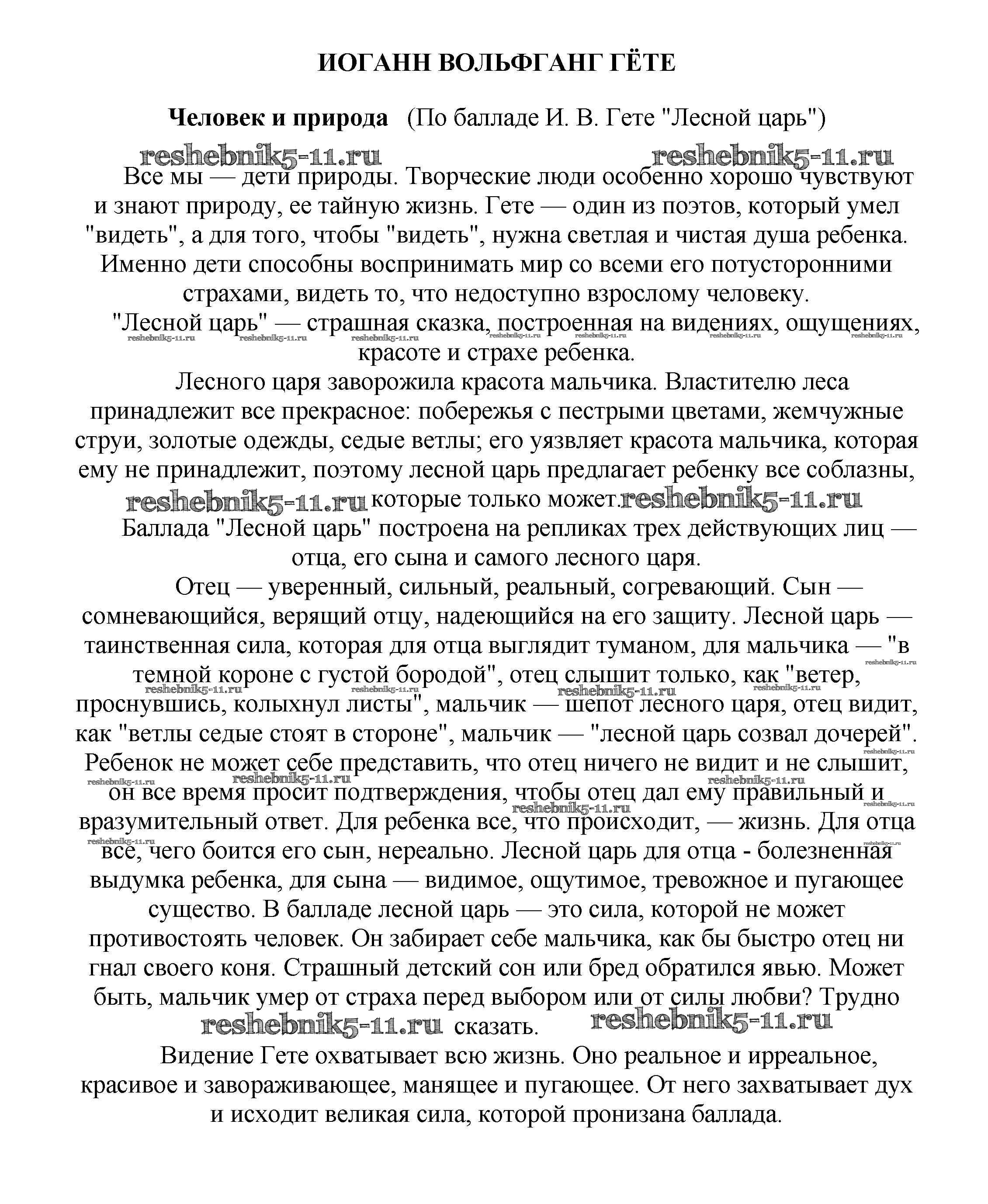 Готовая домашняя работа с ответами по Литературе за 5, 6, 7, 8, 9, 10 класс Белик, Музычук Сочинения Баро-Пресс 2017 - Сочинения по зарубежной литературе Человек и природа (По балладе И. В. Гете "Лесной царь")