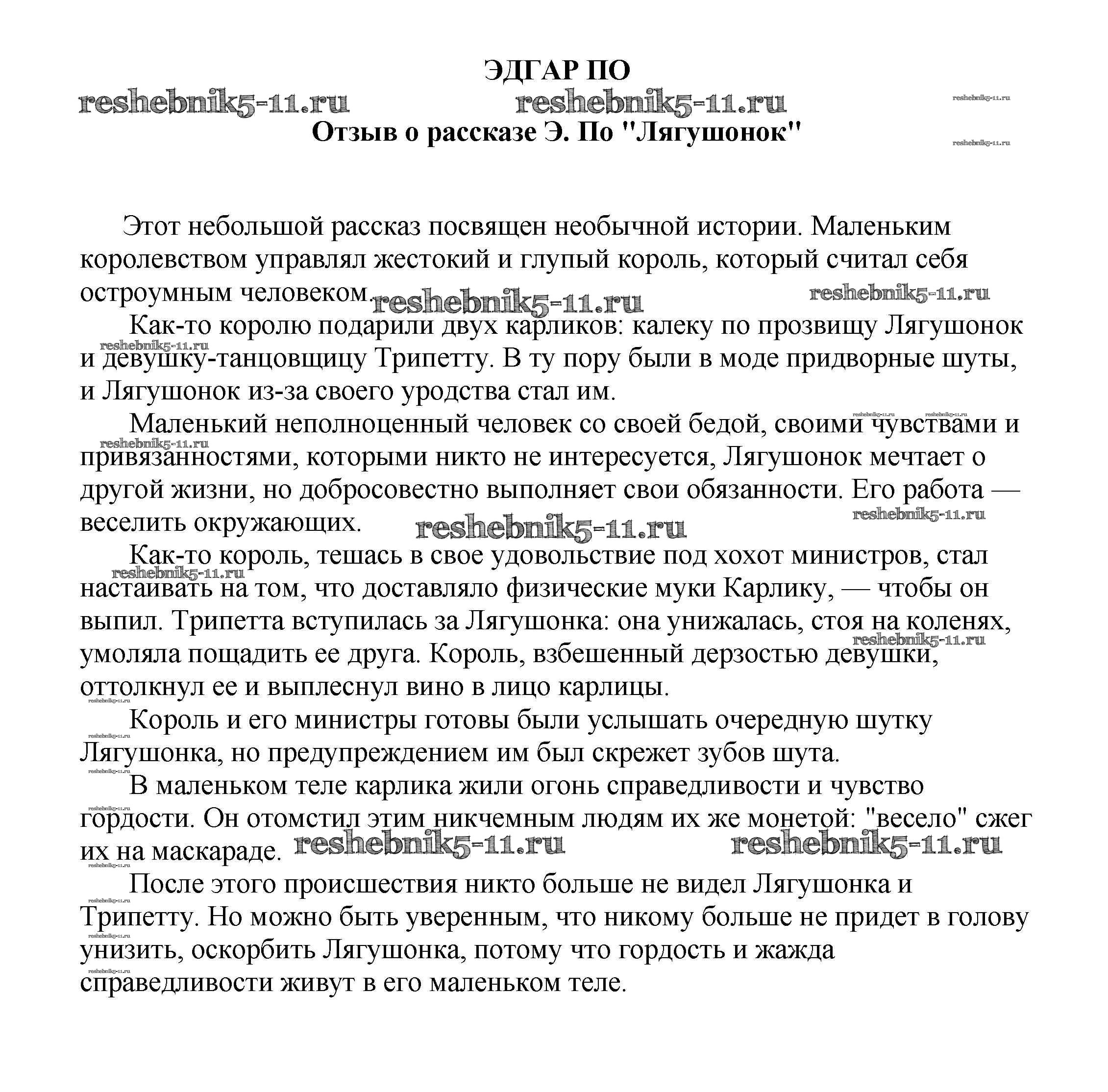 Готовая домашняя работа с ответами по Литературе за 5, 6, 7, 8, 9, 10 класс Белик, Музычук Сочинения Баро-Пресс 2017 - Сочинения по зарубежной литературе Отзыв о рассказе Э. По "Лягушонок"