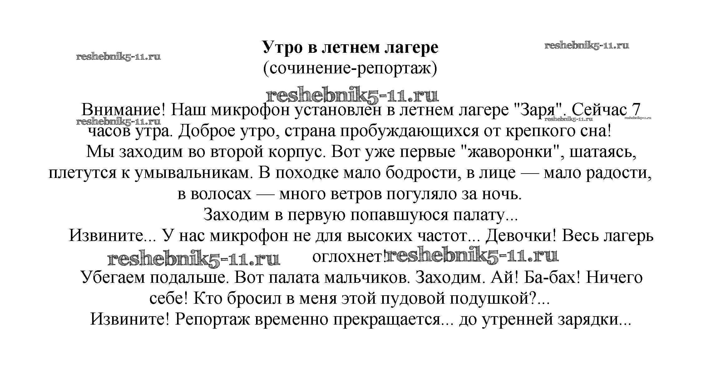Готовая домашняя работа с ответами по Литературе за 5, 6, 7, 8, 9, 10 класс Белик, Музычук Сочинения Баро-Пресс 2017 - Сочинения на свободную тему Утро в летнем лагере (сочинение-репортаж)