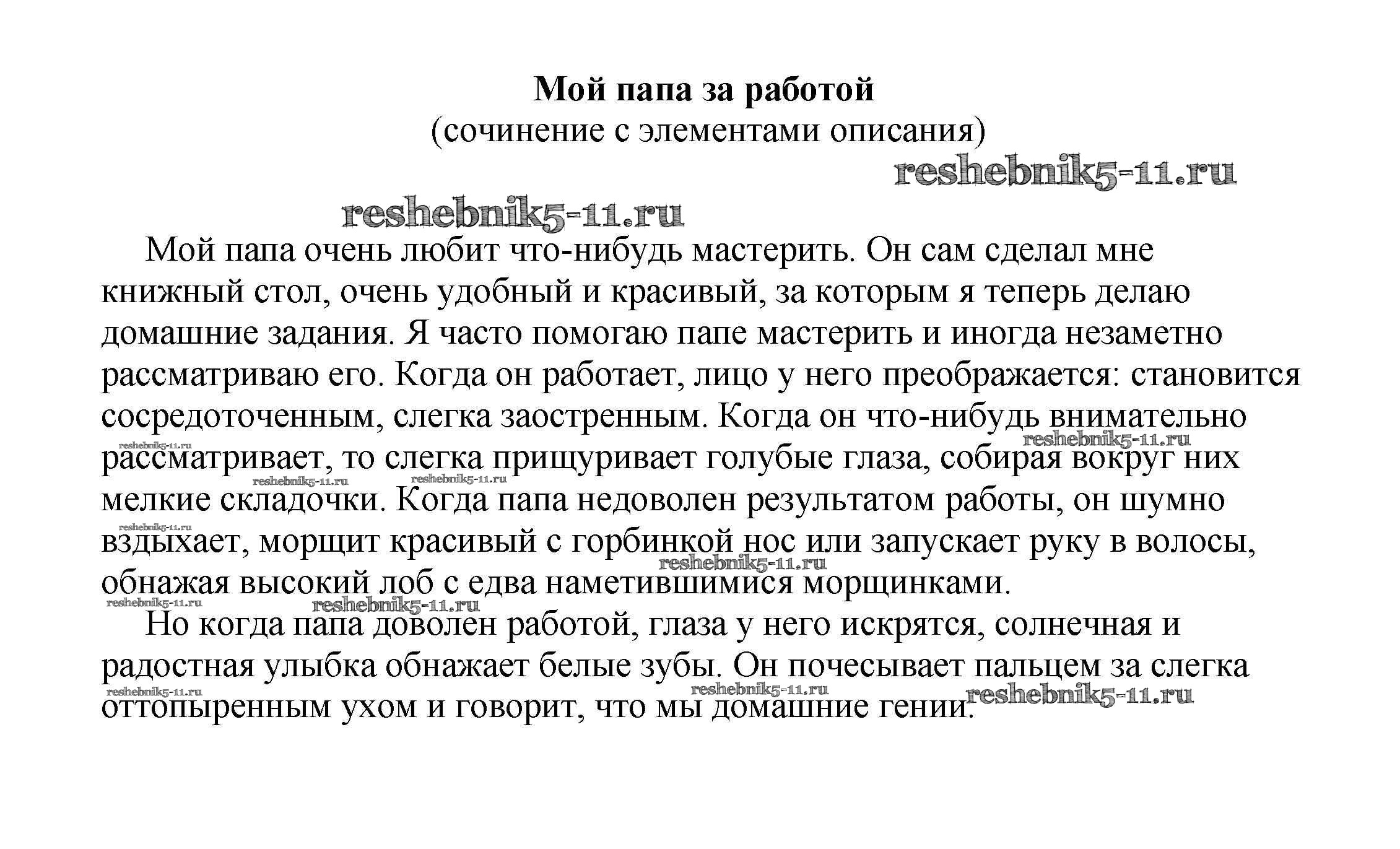 Решебник / 7 класс / сочинения на свободную тему / Мой папа за работой (сочинение с элементами описания)