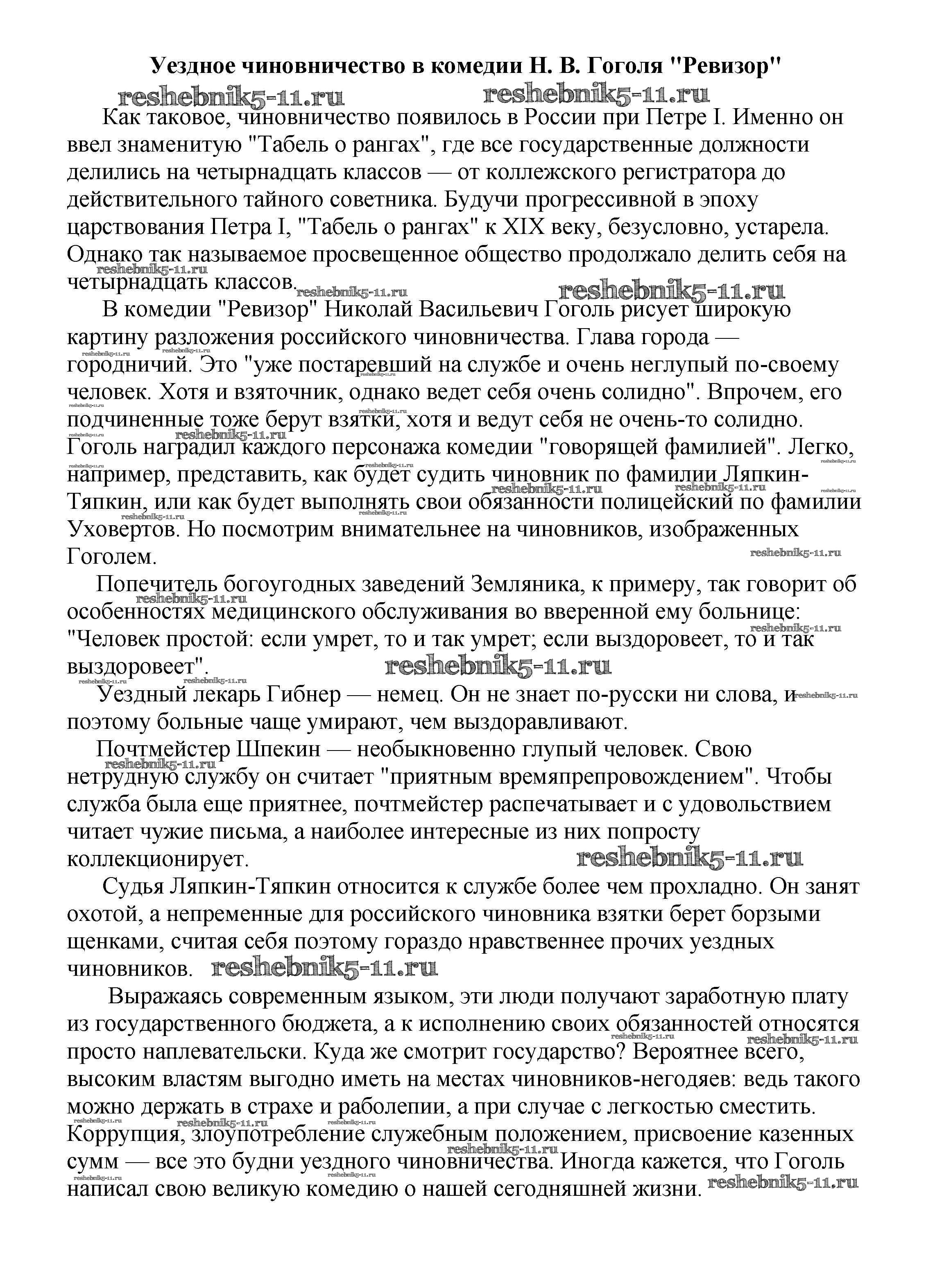 Готовая домашняя работа с ответами по Литературе за 5, 6, 7, 8, 9, 10 класс Белик, Музычук Сочинения Баро-Пресс 2017 - Сочинения по русской литературе Уездное чиновничество в комедии Н. В. Гоголя "Ревизор"
