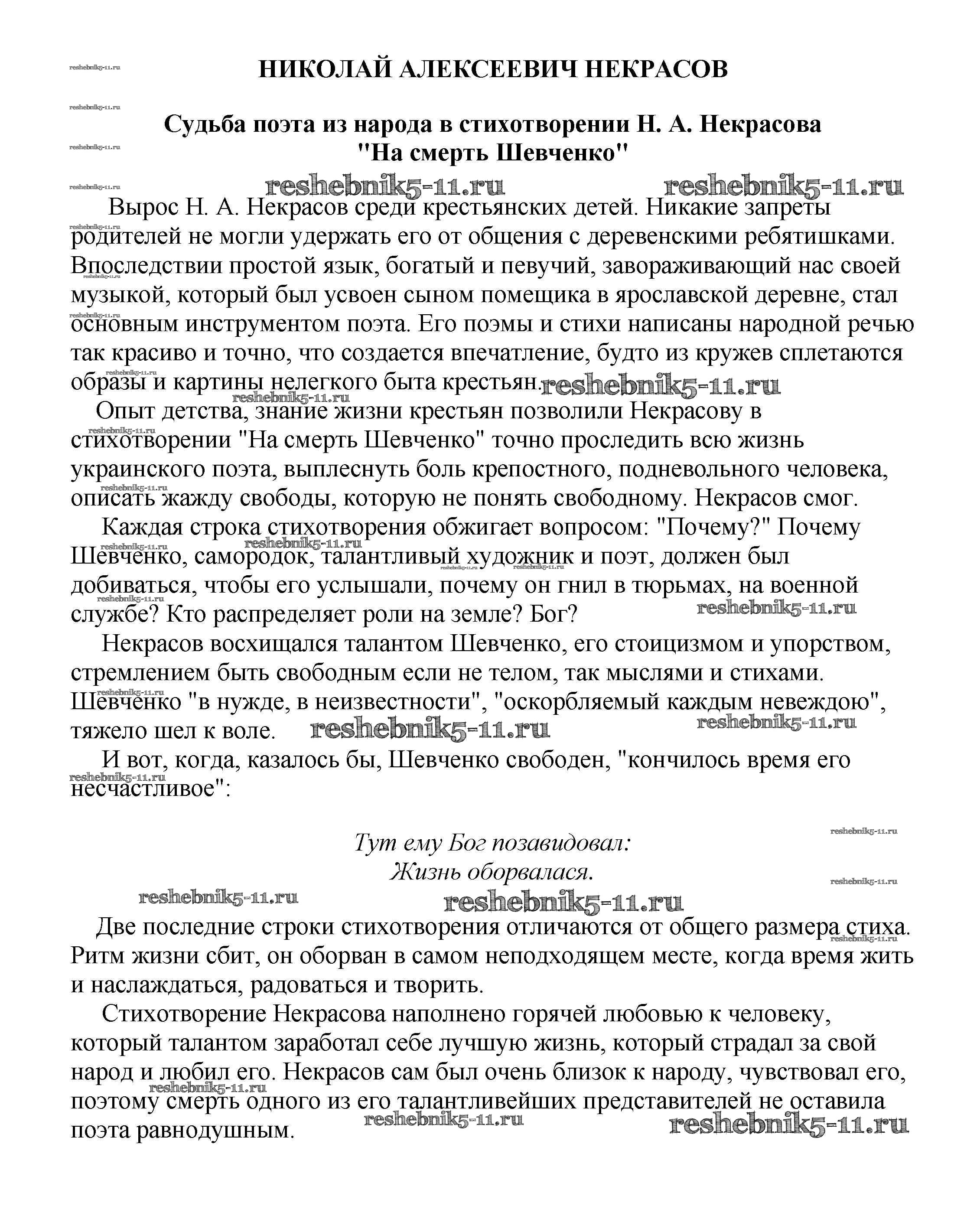 Готовая домашняя работа с ответами по Литературе за 5, 6, 7, 8, 9, 10 класс Белик, Музычук Сочинения Баро-Пресс 2017 - Сочинения по русской литературе Судьба поэта из народа в стихотворении Н. А. Некрасова "На смерть Шевченко
