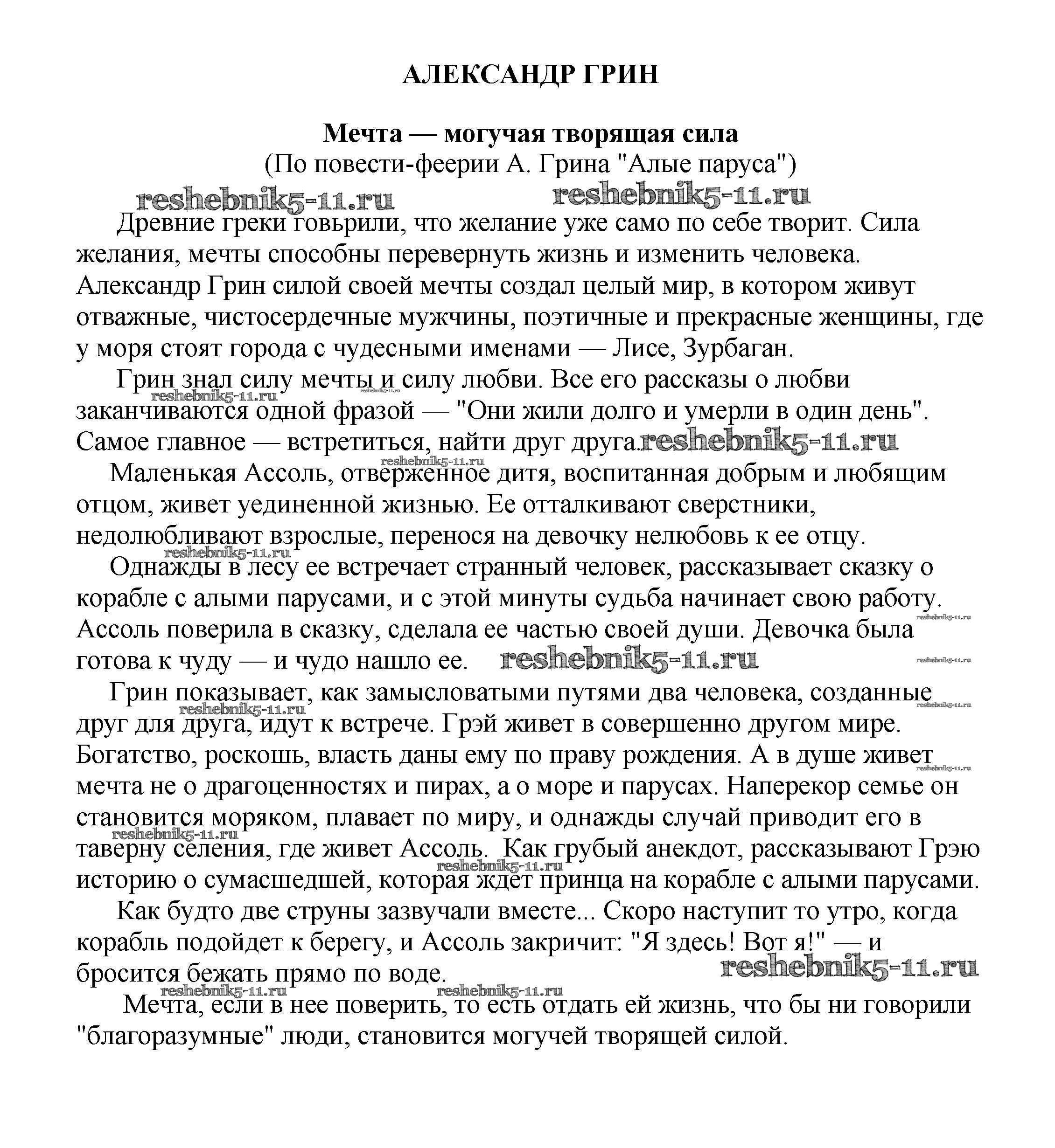 Готовая домашняя работа с ответами по Литературе за 5, 6, 7, 8, 9, 10 класс Белик, Музычук Сочинения Баро-Пресс 2017 - Сочинения по русской литературе Мечта — могучая творящая сила (По повести-феерии А. Грина "Алые паруса")