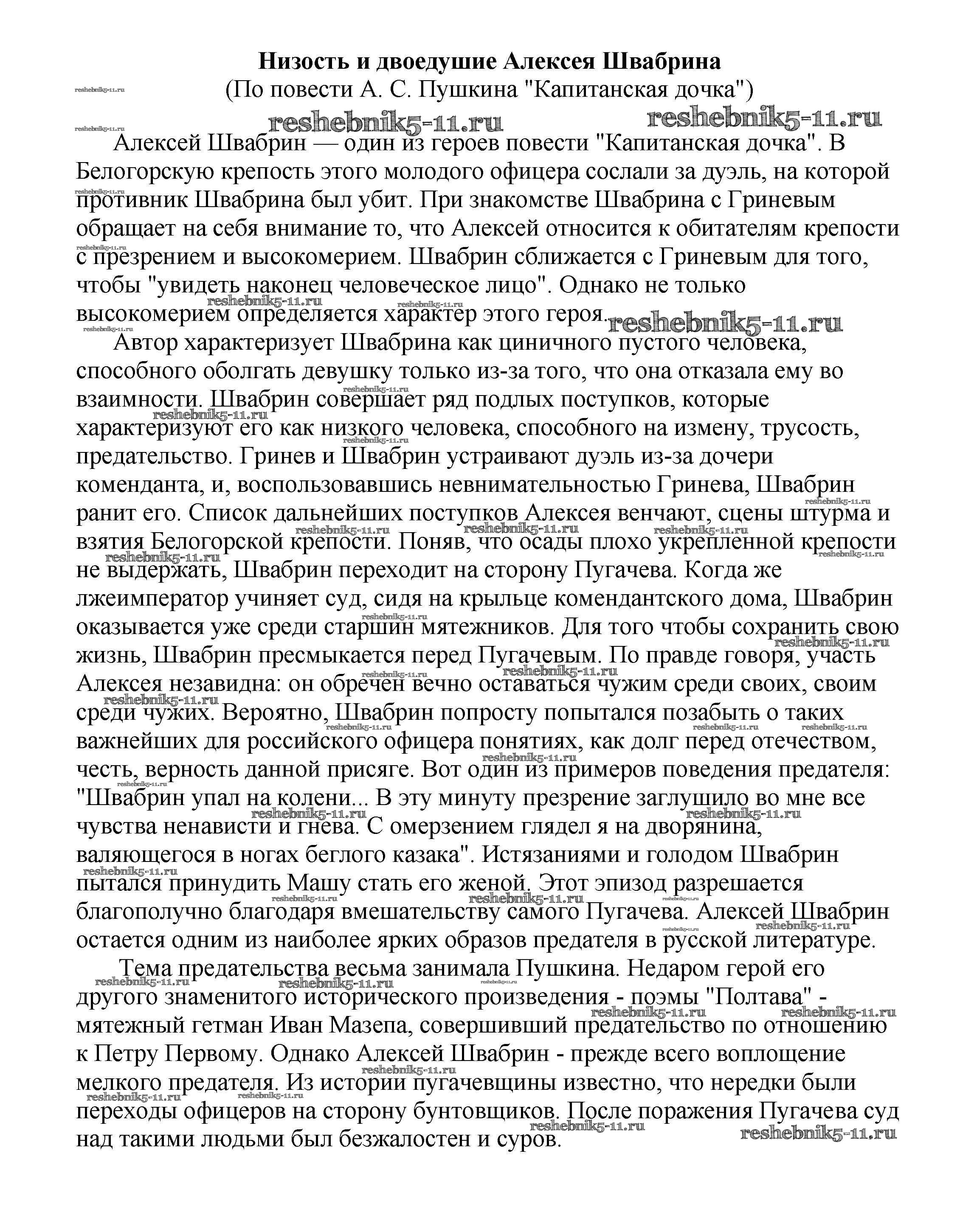 Решебник / 8 класс / сочинения по русской литературе / Низость и двоедушие Алексея Швабрина (По повести А. С. Пушкина "Капитанская дочка")