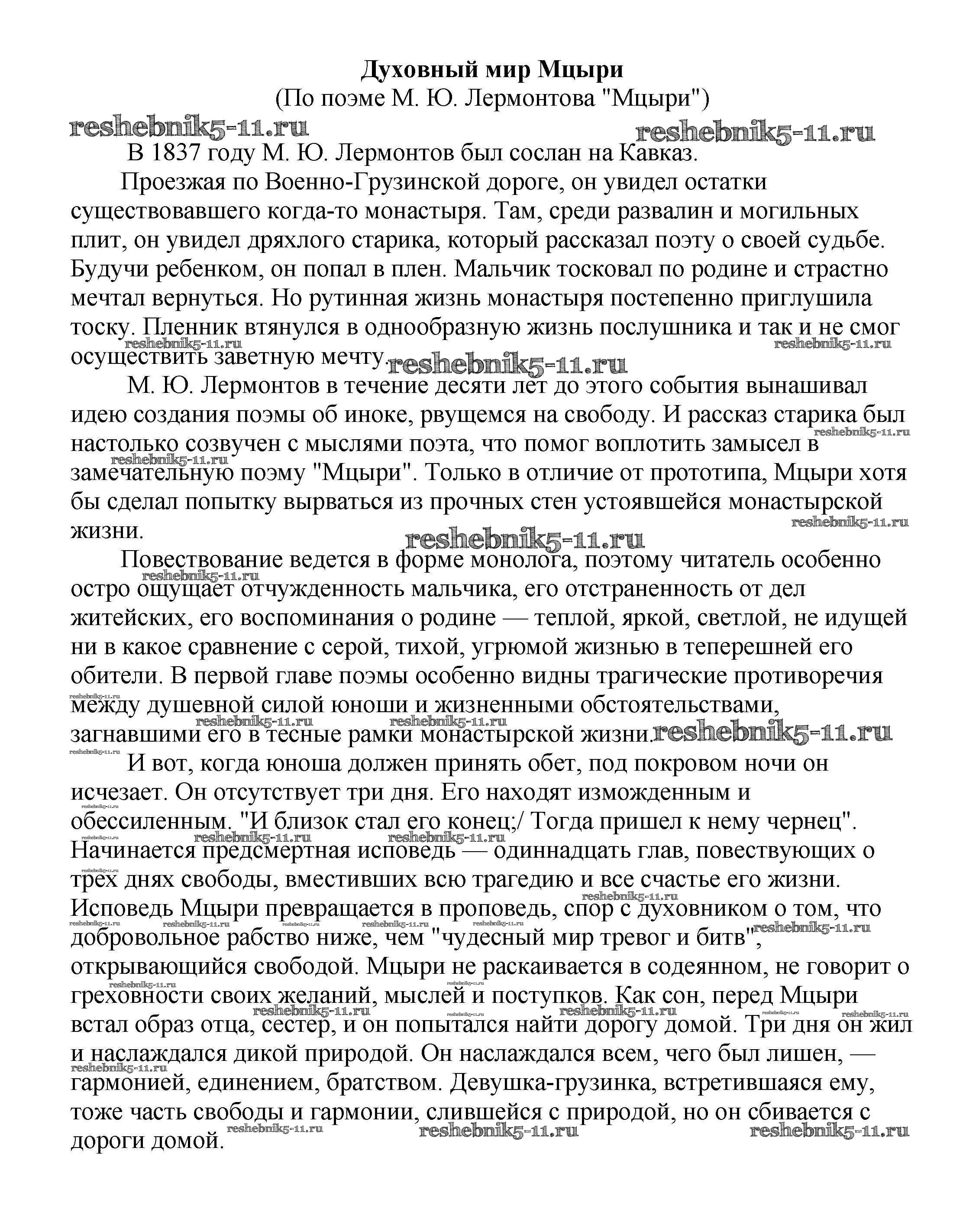 Готовая домашняя работа с ответами по Литературе за 5, 6, 7, 8, 9, 10 класс Белик, Музычук Сочинения Баро-Пресс 2017 - Сочинения по русской литературе Духовный мир Мцыри (По поэме М. Ю. Лермонтова "Мцыри")