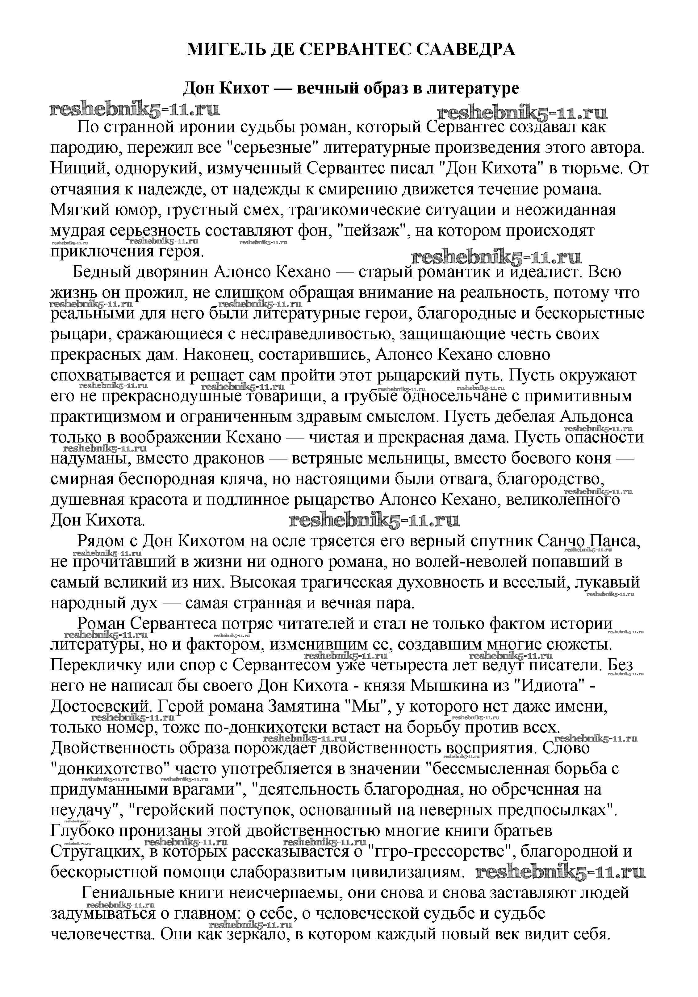 Готовая домашняя работа с ответами по Литературе за 5, 6, 7, 8, 9, 10 класс Белик, Музычук Сочинения Баро-Пресс 2017 - Сочинения по зарубежной литературе Дон Кихот — вечный образ в литературе