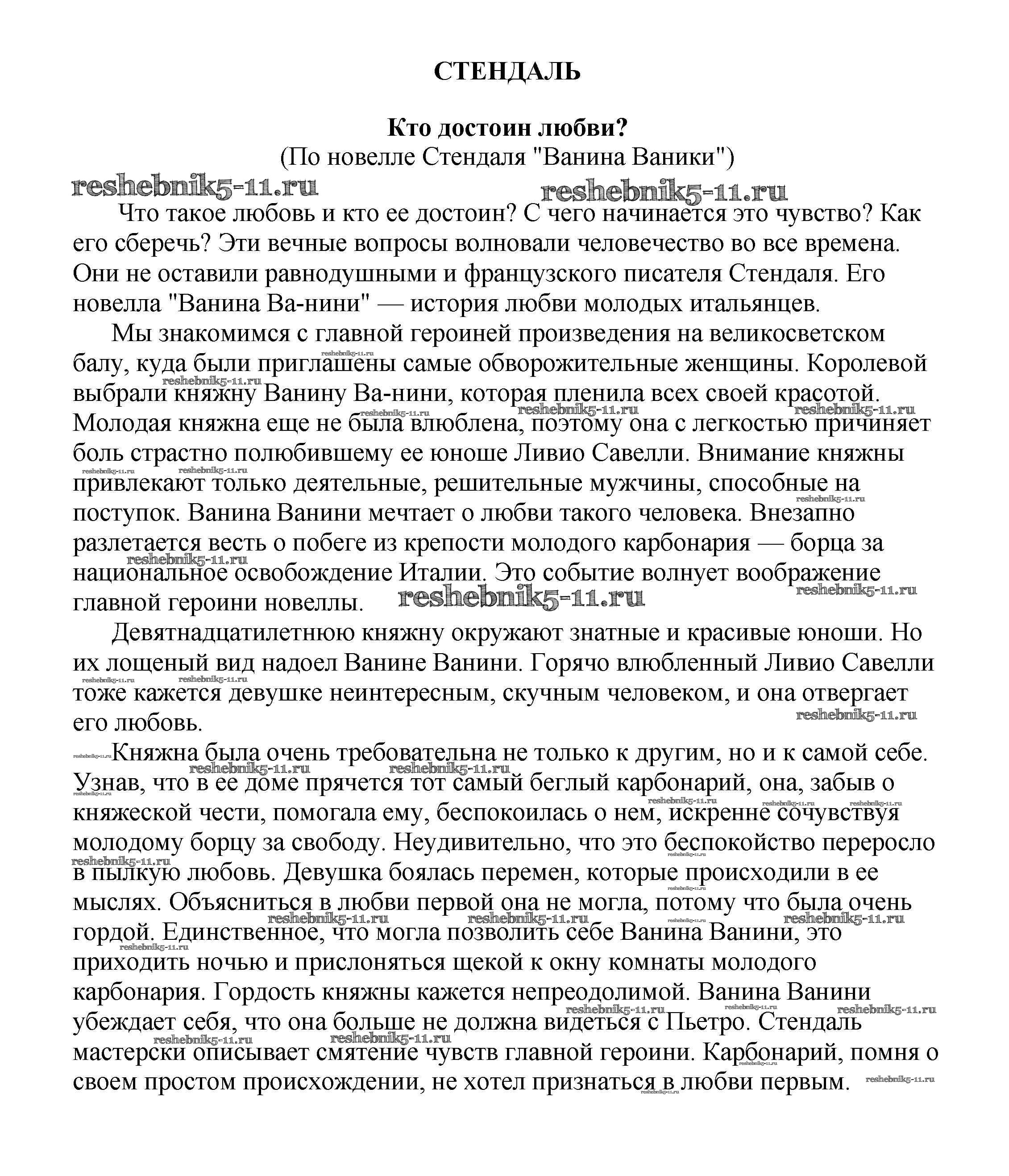 Готовая домашняя работа с ответами по Литературе за 5, 6, 7, 8, 9, 10 класс Белик, Музычук Сочинения Баро-Пресс 2017 - Сочинения по зарубежной литературе Кто достоин любви? (По новелле Стендаля "Ванина Ваники")