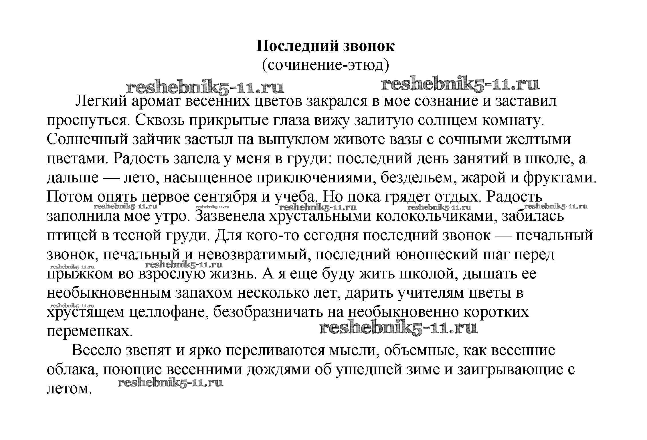 Готовая домашняя работа с ответами по Литературе за 5, 6, 7, 8, 9, 10 класс Белик, Музычук Сочинения Баро-Пресс 2017 - Сочинения на свободную тему Последний звонок (сочинение-этюд)