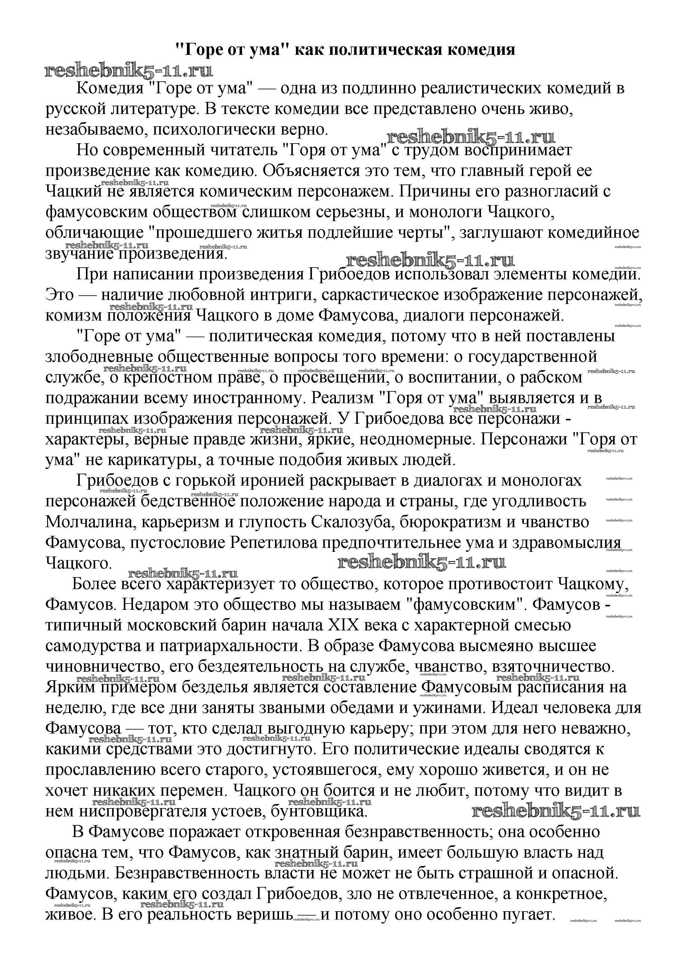 Готовая домашняя работа с ответами по Литературе за 5, 6, 7, 8, 9, 10 класс Белик, Музычук Сочинения Баро-Пресс 2017 - Сочинения по русской литературе "Горе от ума" как политическая комедия
