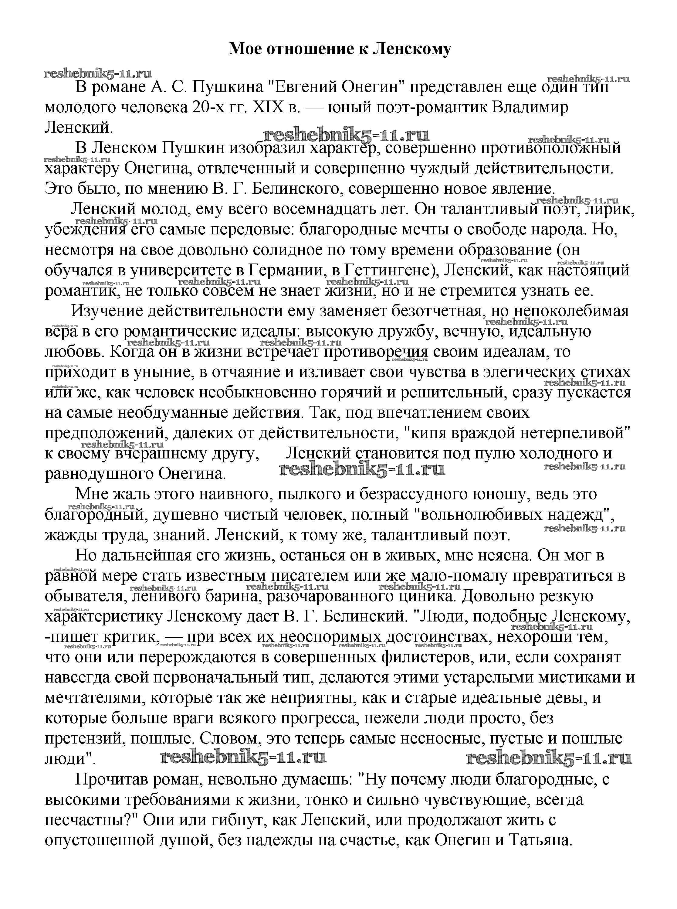 Готовая домашняя работа с ответами по Литературе за 5, 6, 7, 8, 9, 10 класс Белик, Музычук Сочинения Баро-Пресс 2017 - Сочинения по русской литературе Мое отношение к Ленскому