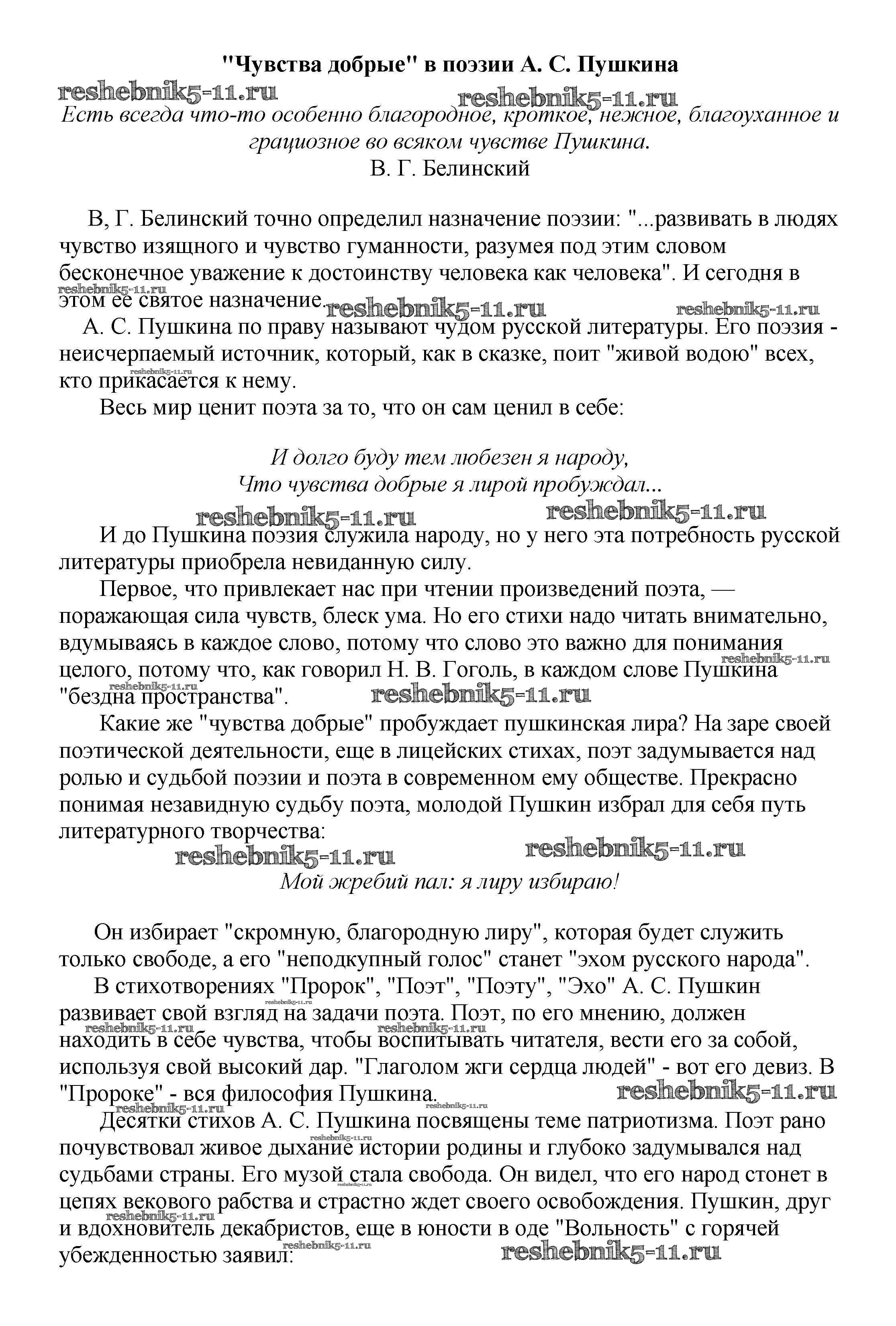 Готовая домашняя работа с ответами по Литературе за 5, 6, 7, 8, 9, 10 класс Белик, Музычук Сочинения Баро-Пресс 2017 - Сочинения по русской литературе "Чувства добрые" в поэзии А. С. Пушкина