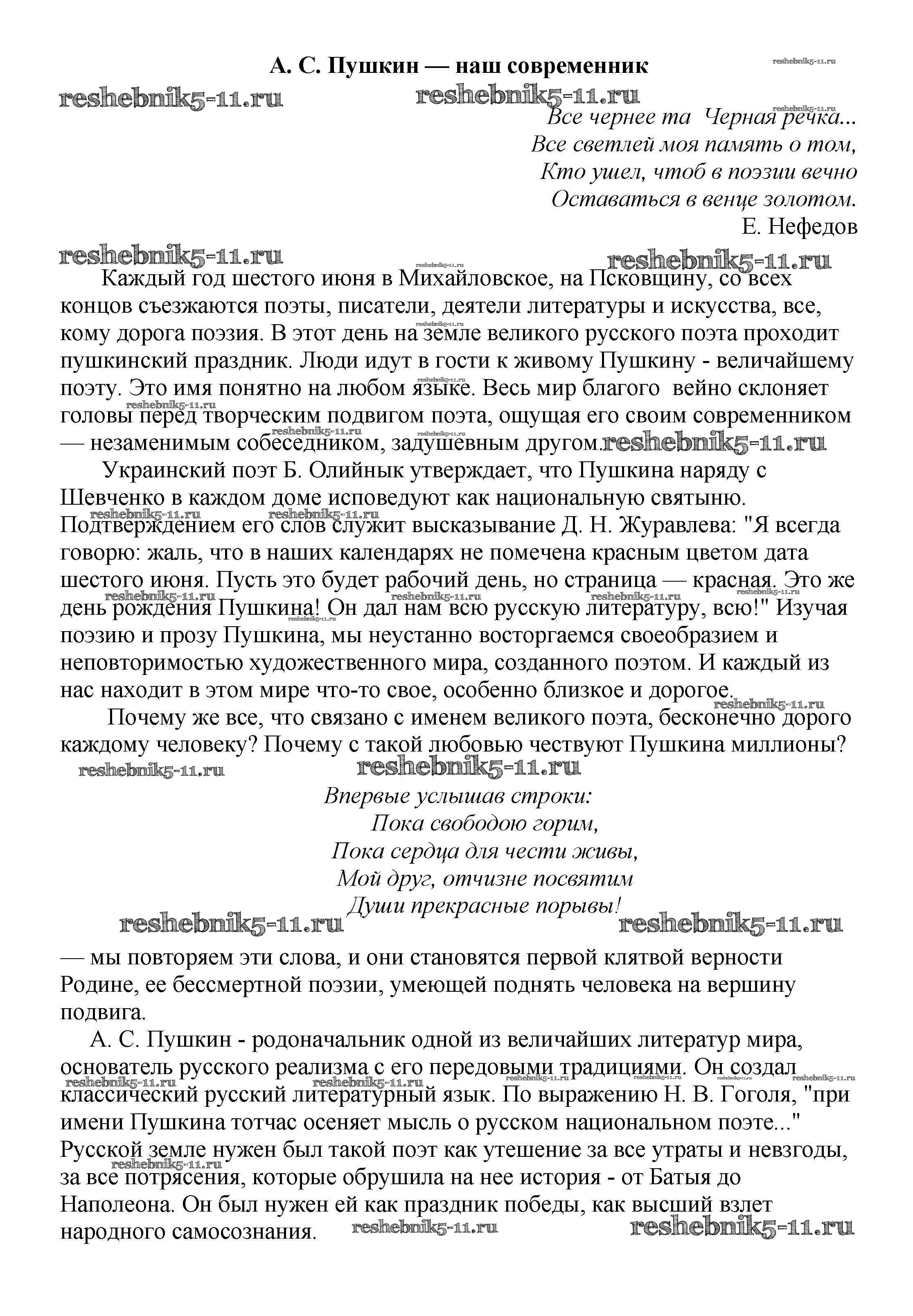 Готовая домашняя работа с ответами по Литературе за 5, 6, 7, 8, 9, 10 класс Белик, Музычук Сочинения Баро-Пресс 2017 - Сочинения по русской литературе А. С. Пушкин — наш современник