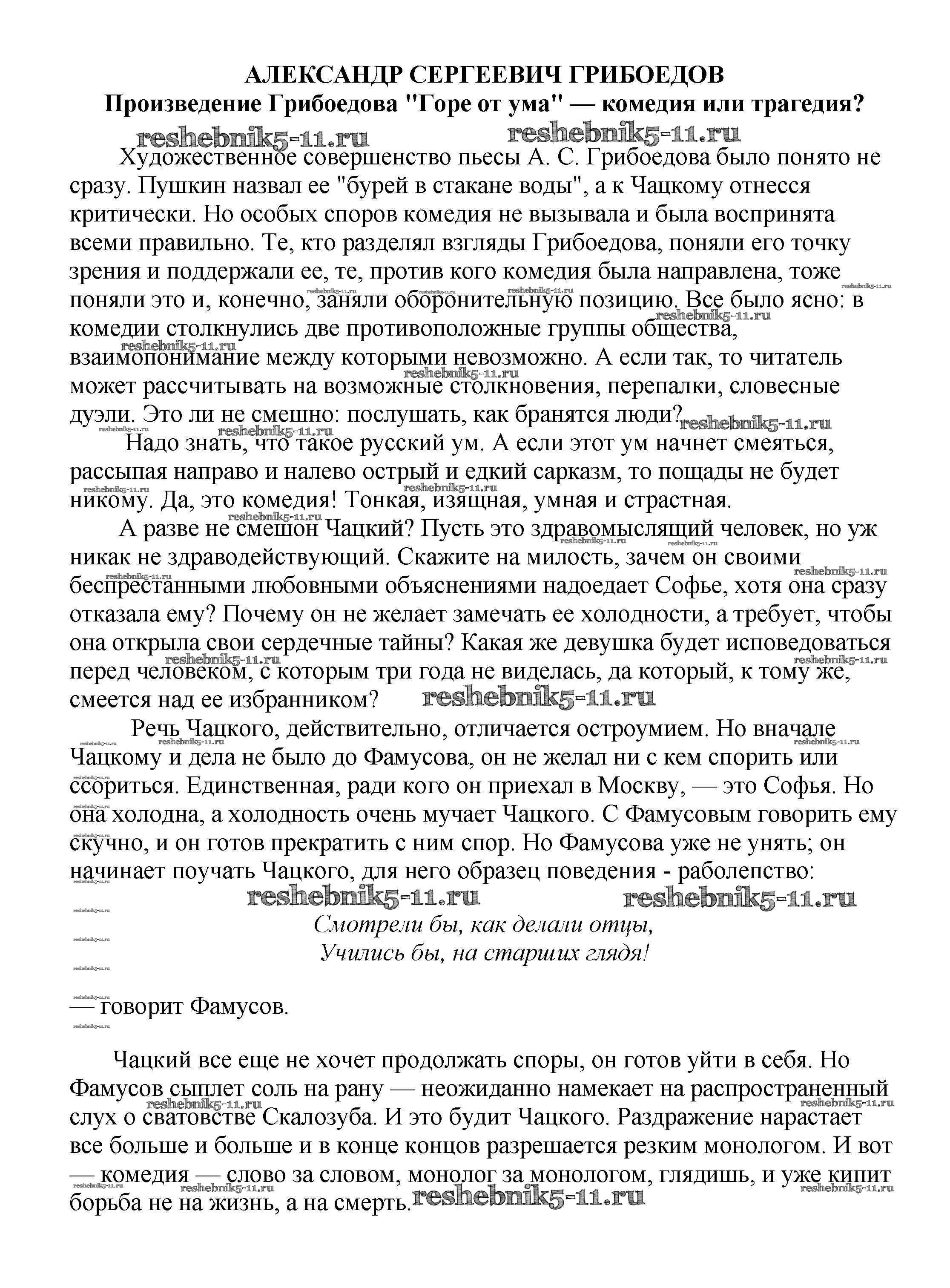 Готовая домашняя работа с ответами по Литературе за 5, 6, 7, 8, 9, 10 класс Белик, Музычук Сочинения Баро-Пресс 2017 - Сочинения по русской литературе Произведение Грибоедова "Горе от ума" — комедия или трагедия?