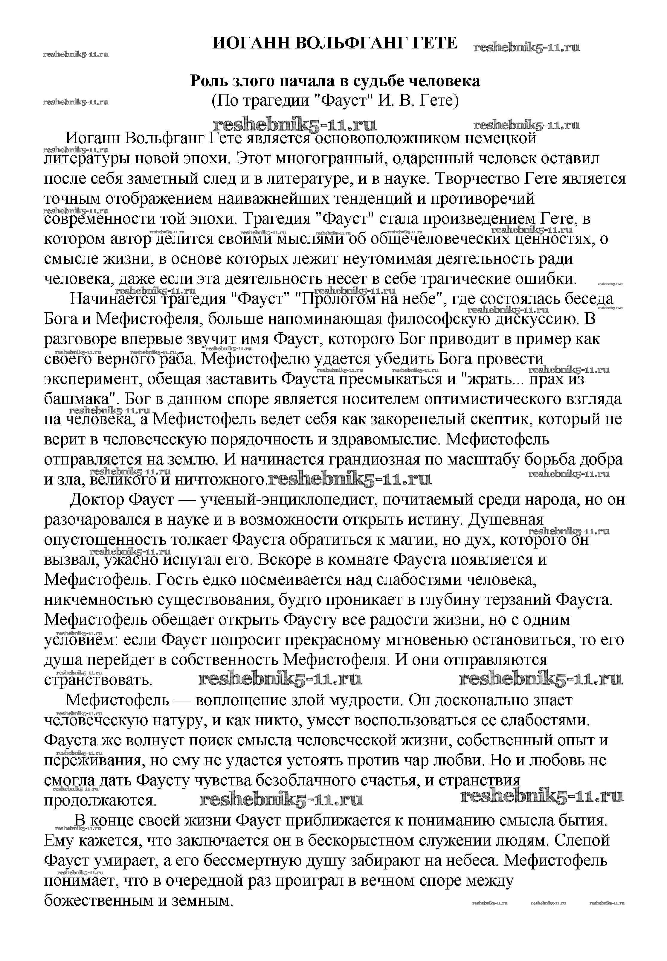 Готовая домашняя работа с ответами по Литературе за 5, 6, 7, 8, 9, 10 класс Белик, Музычук Сочинения Баро-Пресс 2017 - Сочинения по зарубежной литературе Роль злого начала в судьбе человека (По трагедии "Фауст" И. В. Гете)