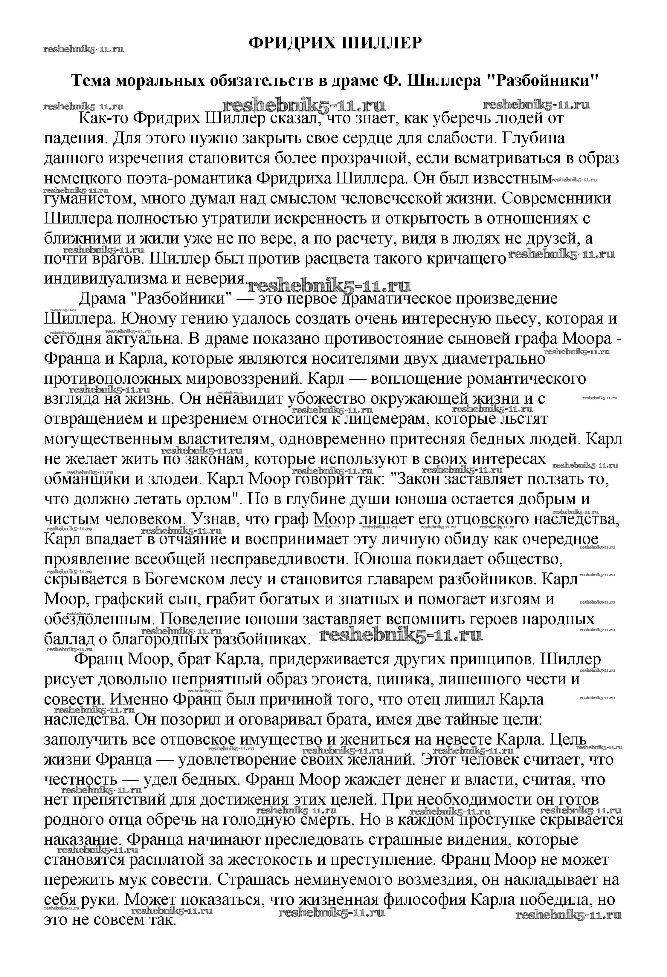 Готовая домашняя работа с ответами по Литературе за 5, 6, 7, 8, 9, 10 класс Белик, Музычук Сочинения Баро-Пресс 2017 - Сочинения по зарубежной литературе Тема моральных обязательств в драме Ф. Шиллера "Разбойники"