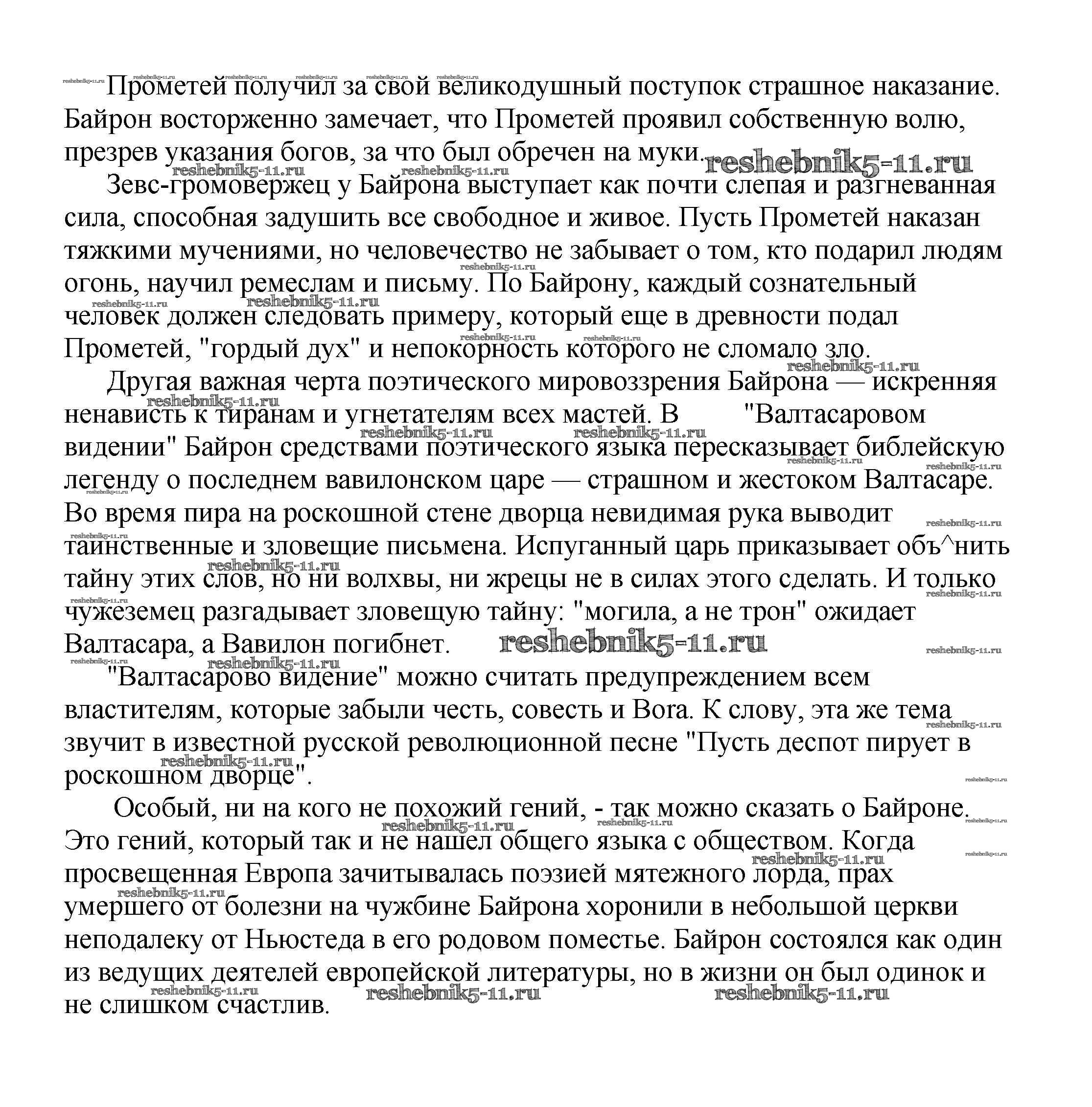 Решебник / 9 класс / сочинения по зарубежной литературе / Особенности поэтического мира Байрона (По произведениям Джорджа Гордона Байрона "Прометей" и "Валтасарово видение")