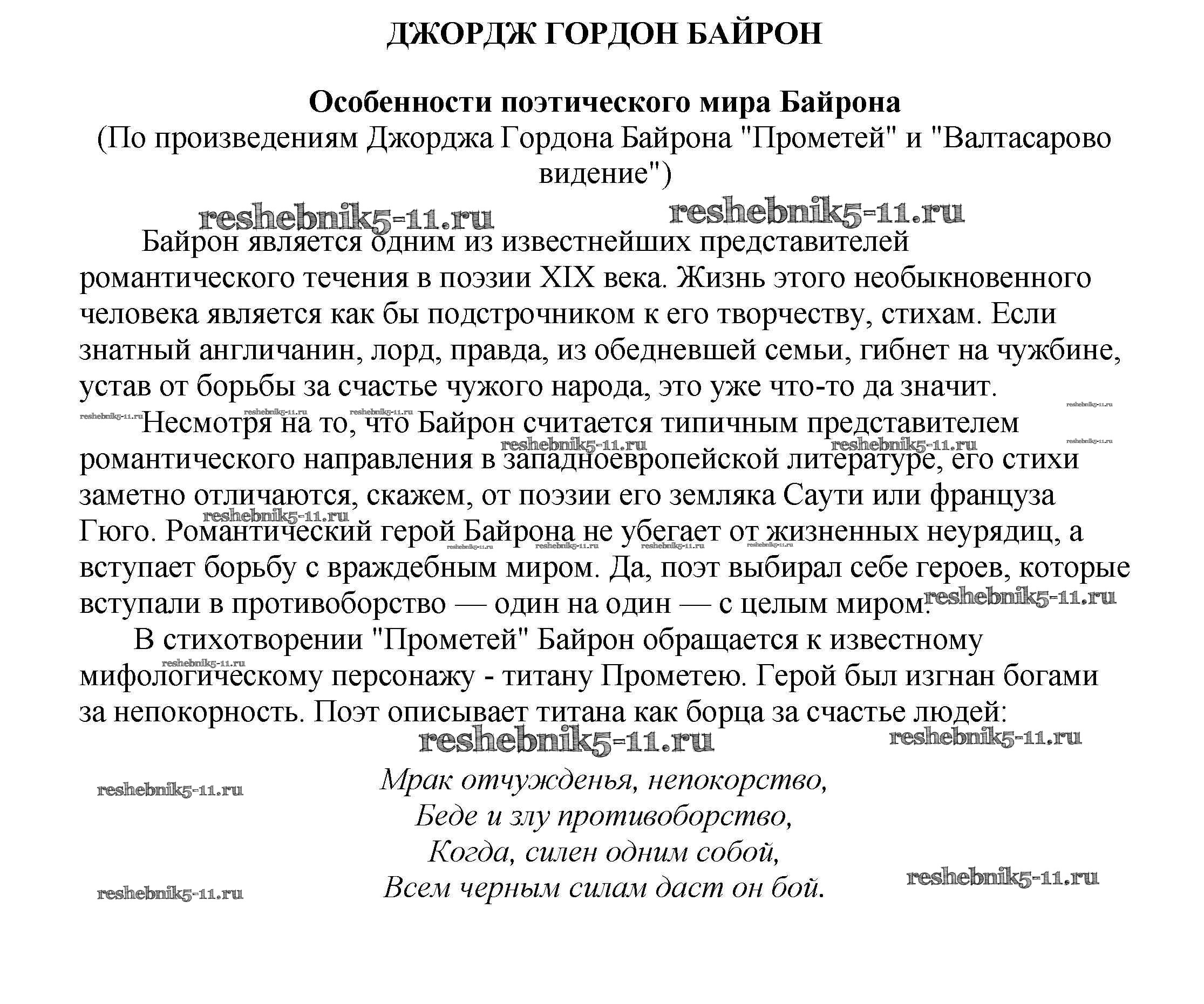 Готовая домашняя работа с ответами по Литературе за 5, 6, 7, 8, 9, 10 класс Белик, Музычук Сочинения Баро-Пресс 2017 - Сочинения по зарубежной литературе Особенности поэтического мира Байрона (По произведениям Джорджа Гордона Байрона "Прометей" и "Валтасарово видение")
