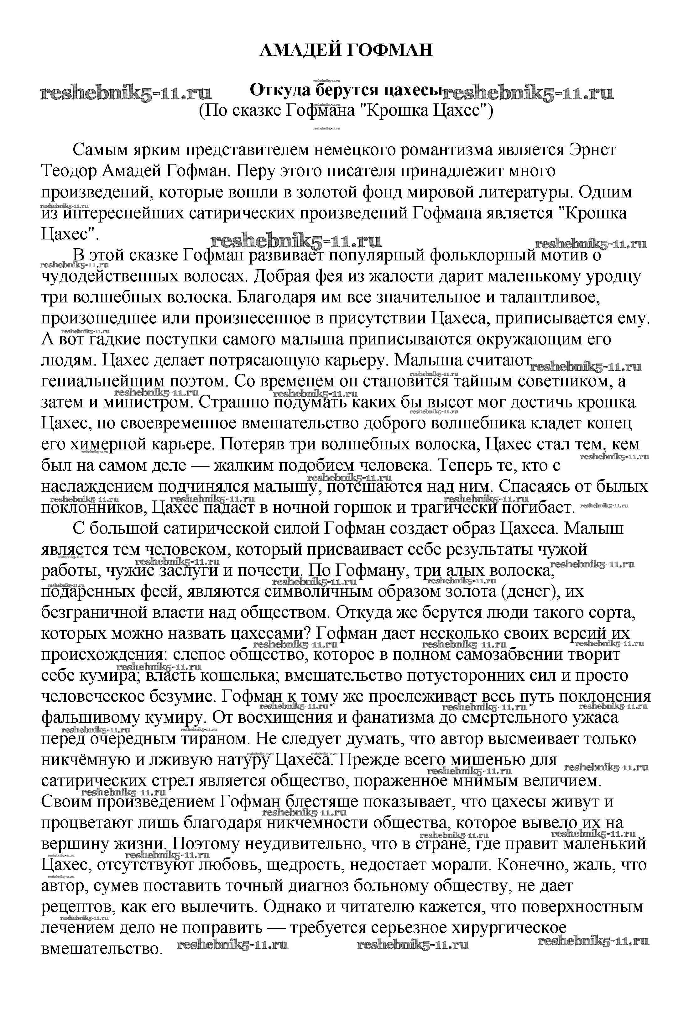 Готовая домашняя работа с ответами по Литературе за 5, 6, 7, 8, 9, 10 класс Белик, Музычук Сочинения Баро-Пресс 2017 - Сочинения по зарубежной литературе Откуда берутся цахесы (По сказке Гофмана "Крошка Цахес")