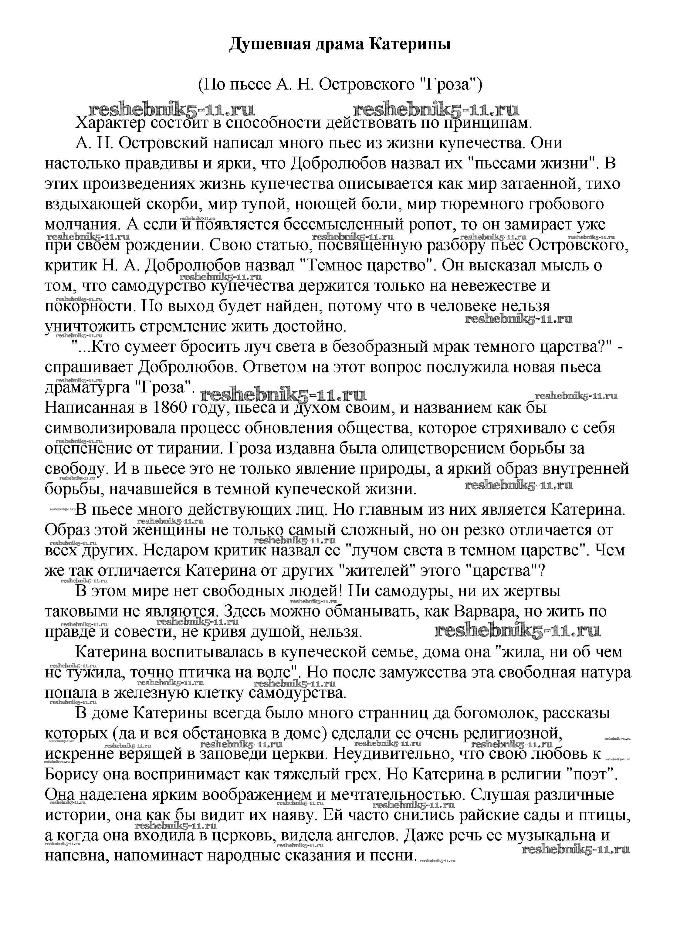 Решебник / 10 класс / сочинения по русской литературе / Душевная драма Катерины (По пьесе А. Н. Островского "Гроза")