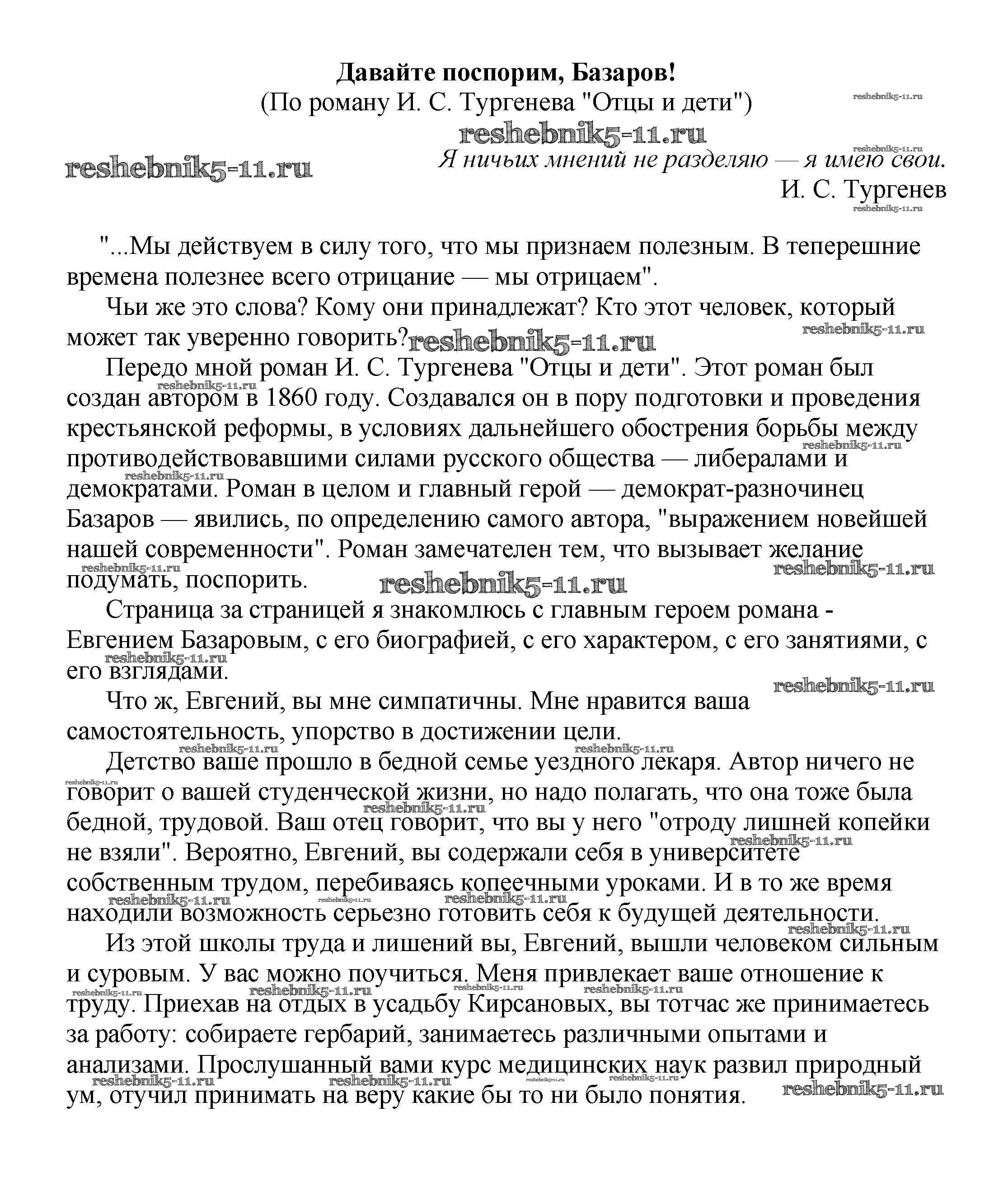 Готовая домашняя работа с ответами по Литературе за 5, 6, 7, 8, 9, 10 класс Белик, Музычук Сочинения Баро-Пресс 2017 - Сочинения по русской литературе Давайте поспорим, Базаров! (По роману И. С. Тургенева "Отцы и дети")
