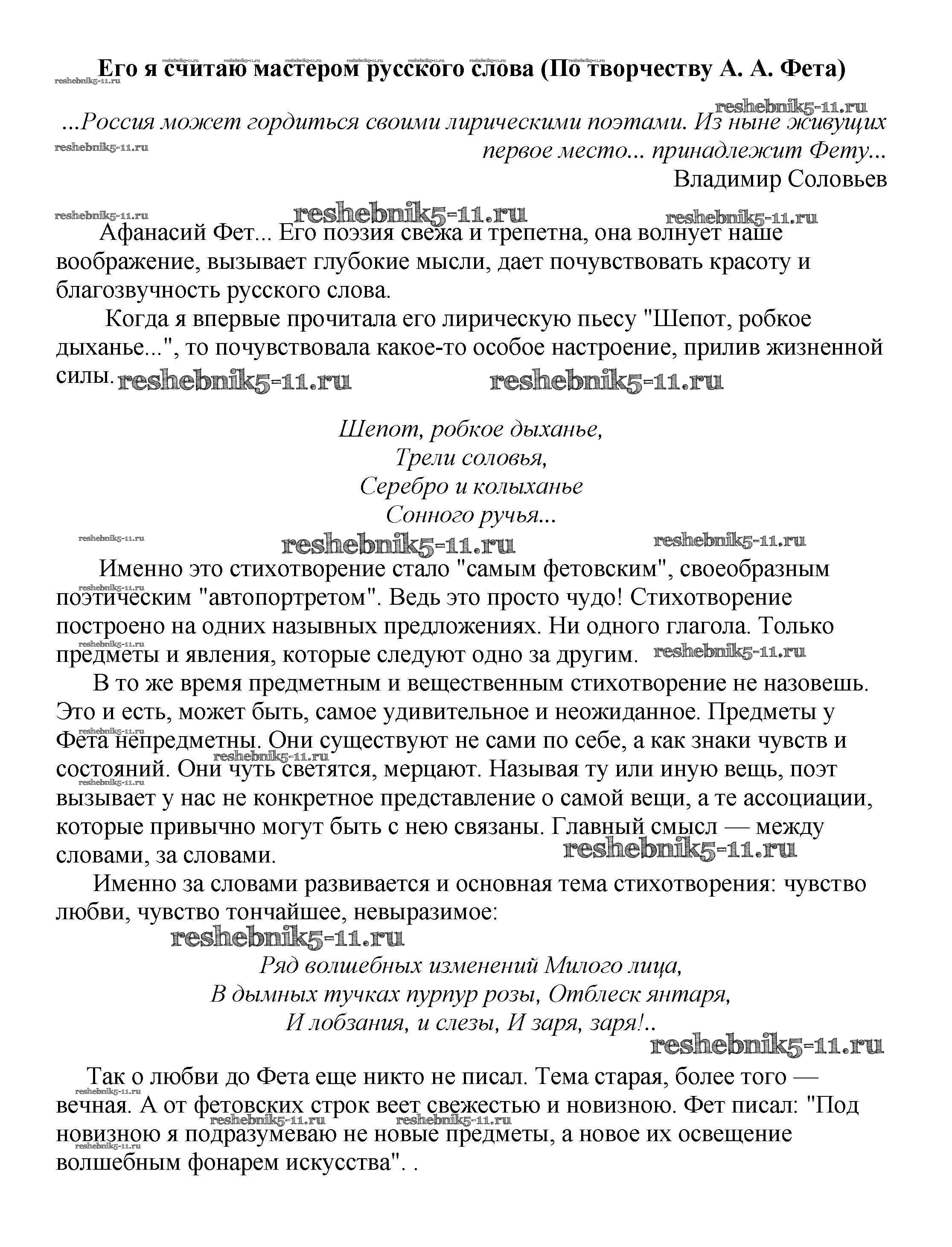 Решебник / 10 класс / сочинения по русской литературе / Его я считаю мастером русского слова (По творчеству А. А. Фета)