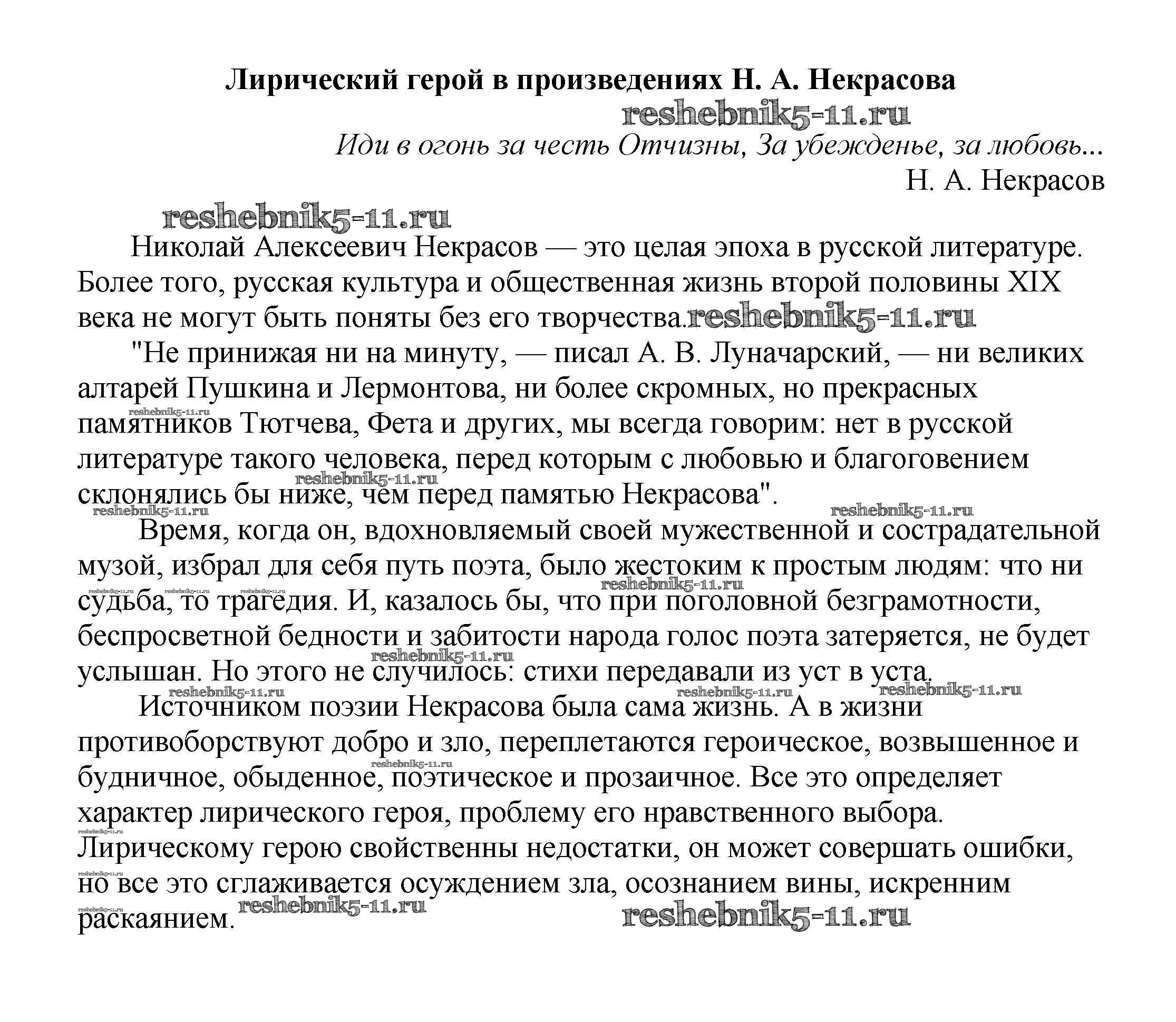 Готовая домашняя работа с ответами по Литературе за 5, 6, 7, 8, 9, 10 класс Белик, Музычук Сочинения Баро-Пресс 2017 - Сочинения по русской литературе Лирический герой в произведениях Н. А. Некрасова