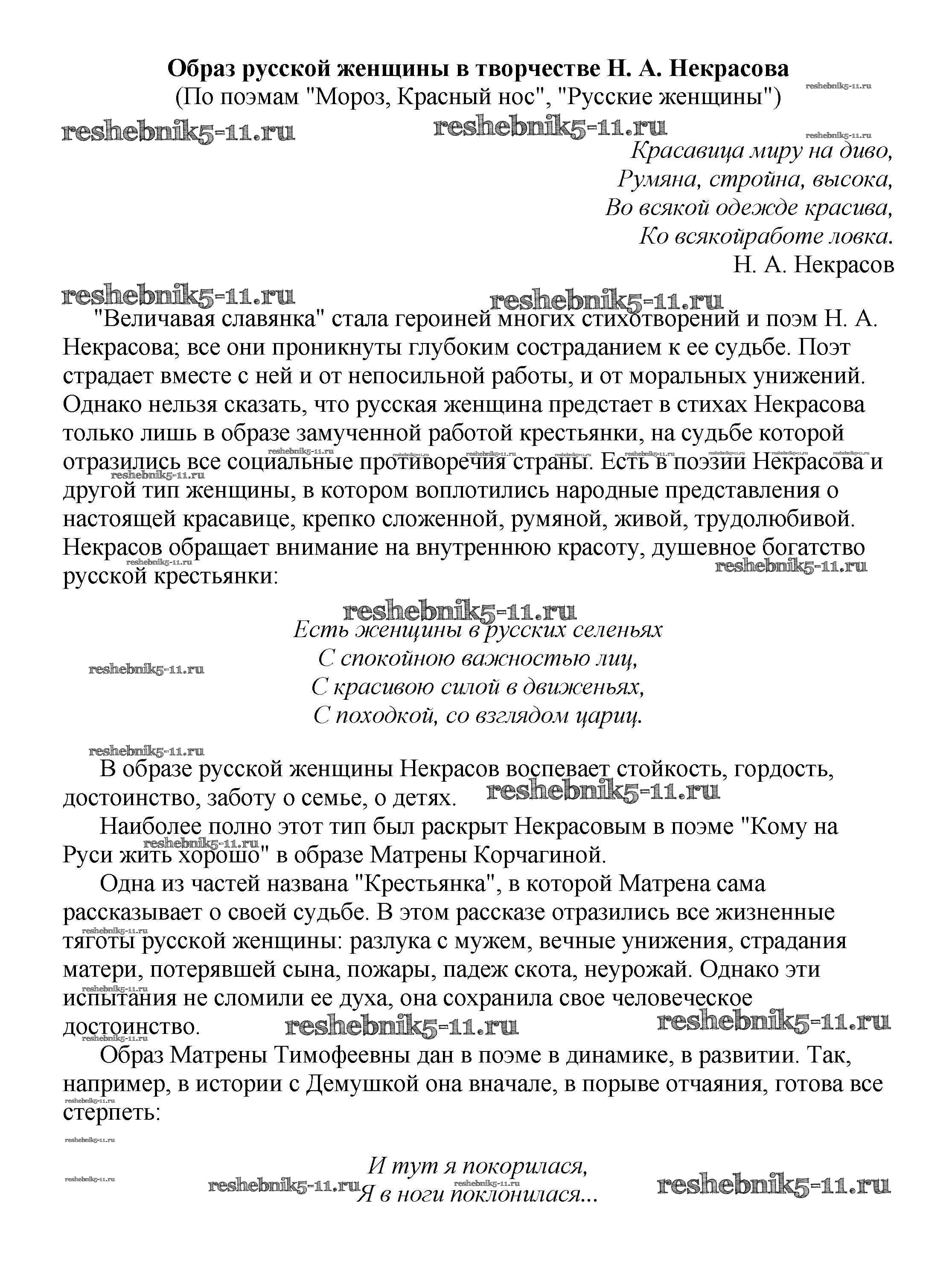Решебник / 10 класс / сочинения по русской литературе / Образ русской женщины в творчестве Н. А. Некрасова (По поэмам "Мороз, Красный нос", "Русские женщины")