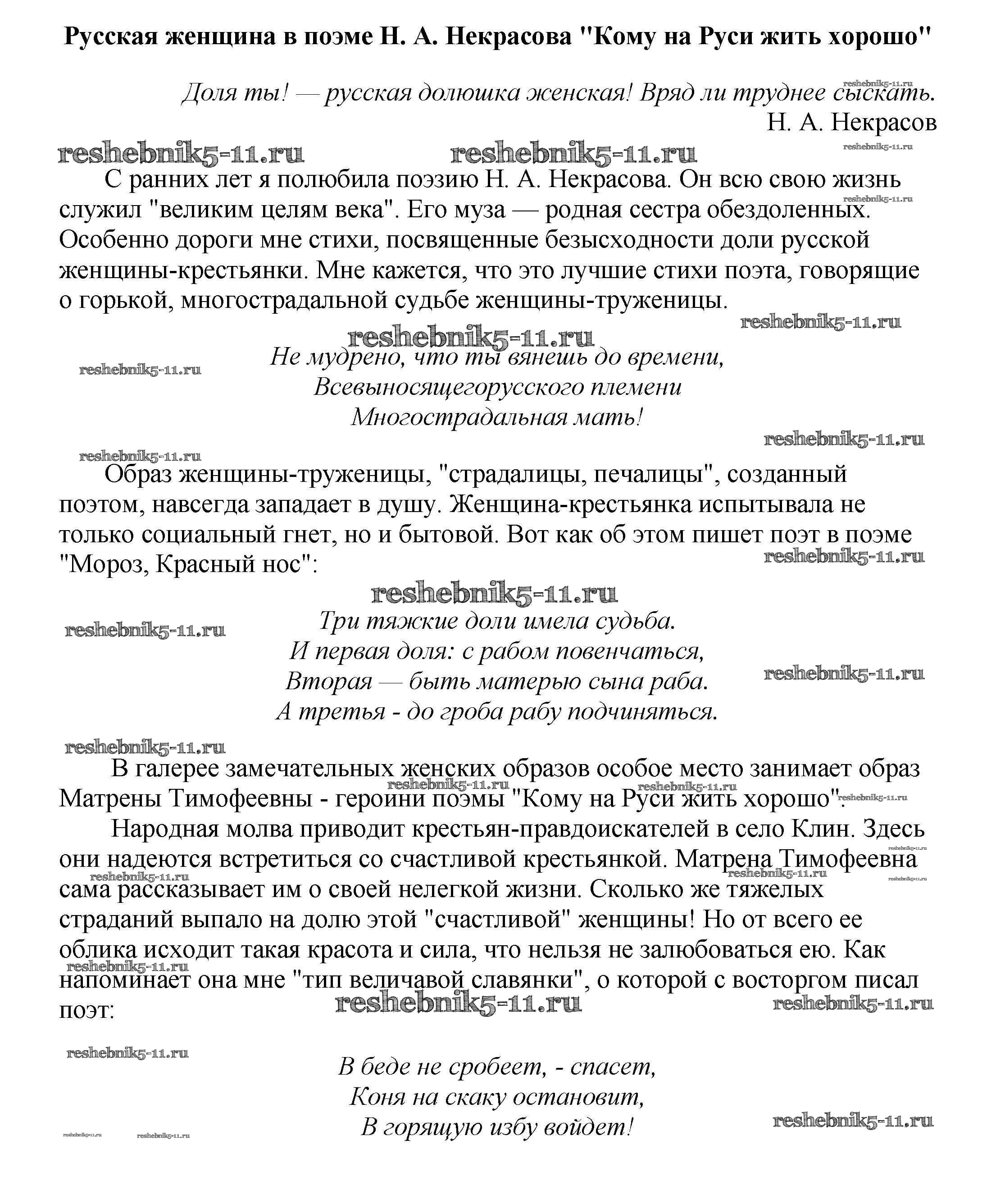 Готовая домашняя работа с ответами по Литературе за 5, 6, 7, 8, 9, 10 класс Белик, Музычук Сочинения Баро-Пресс 2017 - Сочинения по русской литературе Русская женщина в поэме Н. А. Некрасова "Кому на Руси жить хорошо"
