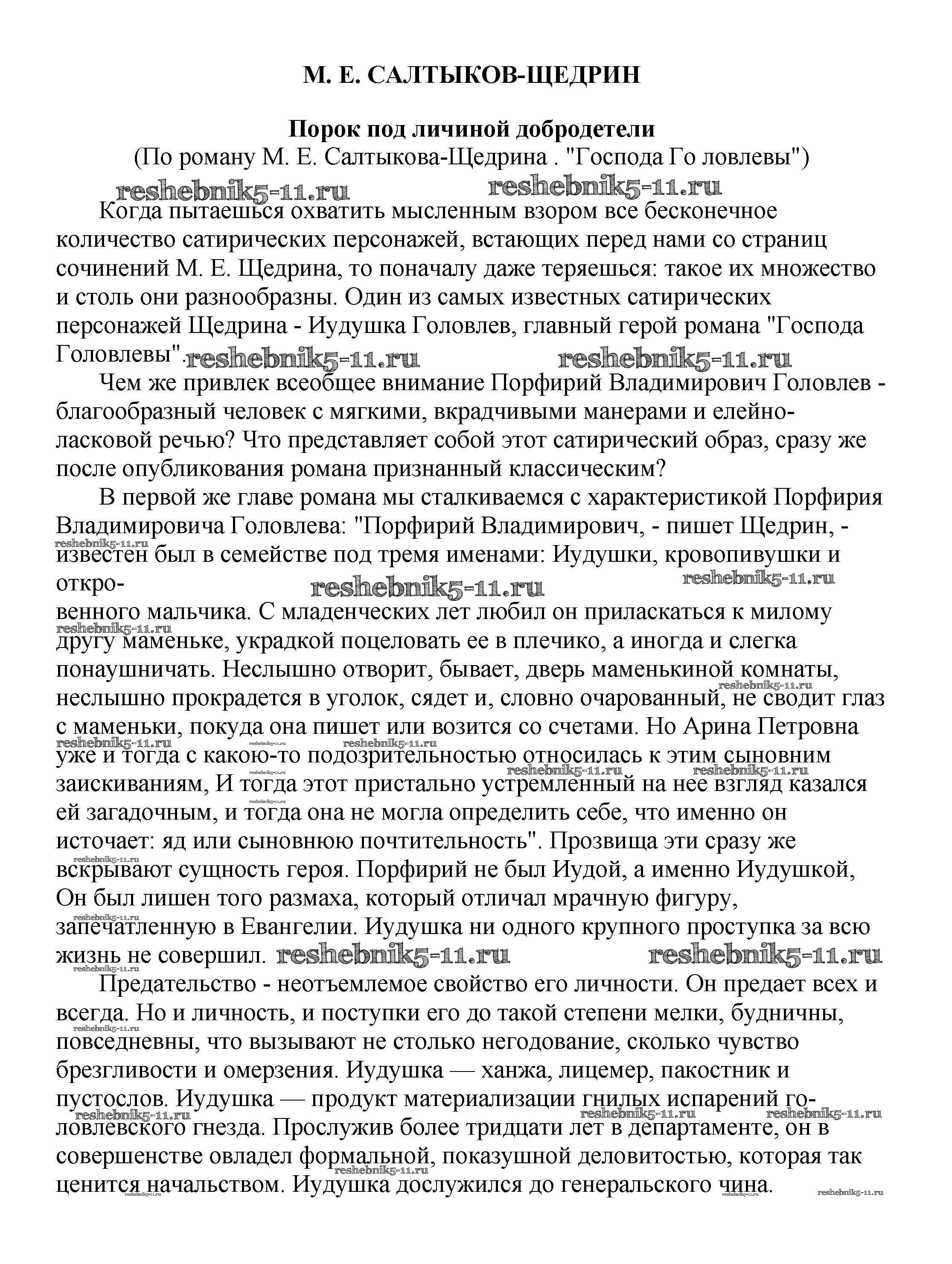 Решебник / 10 класс / сочинения по русской литературе / Порок под личиной добродетели (По роману М. Е. Салтыкова-Щедрина . "Господа Го ловлевы")