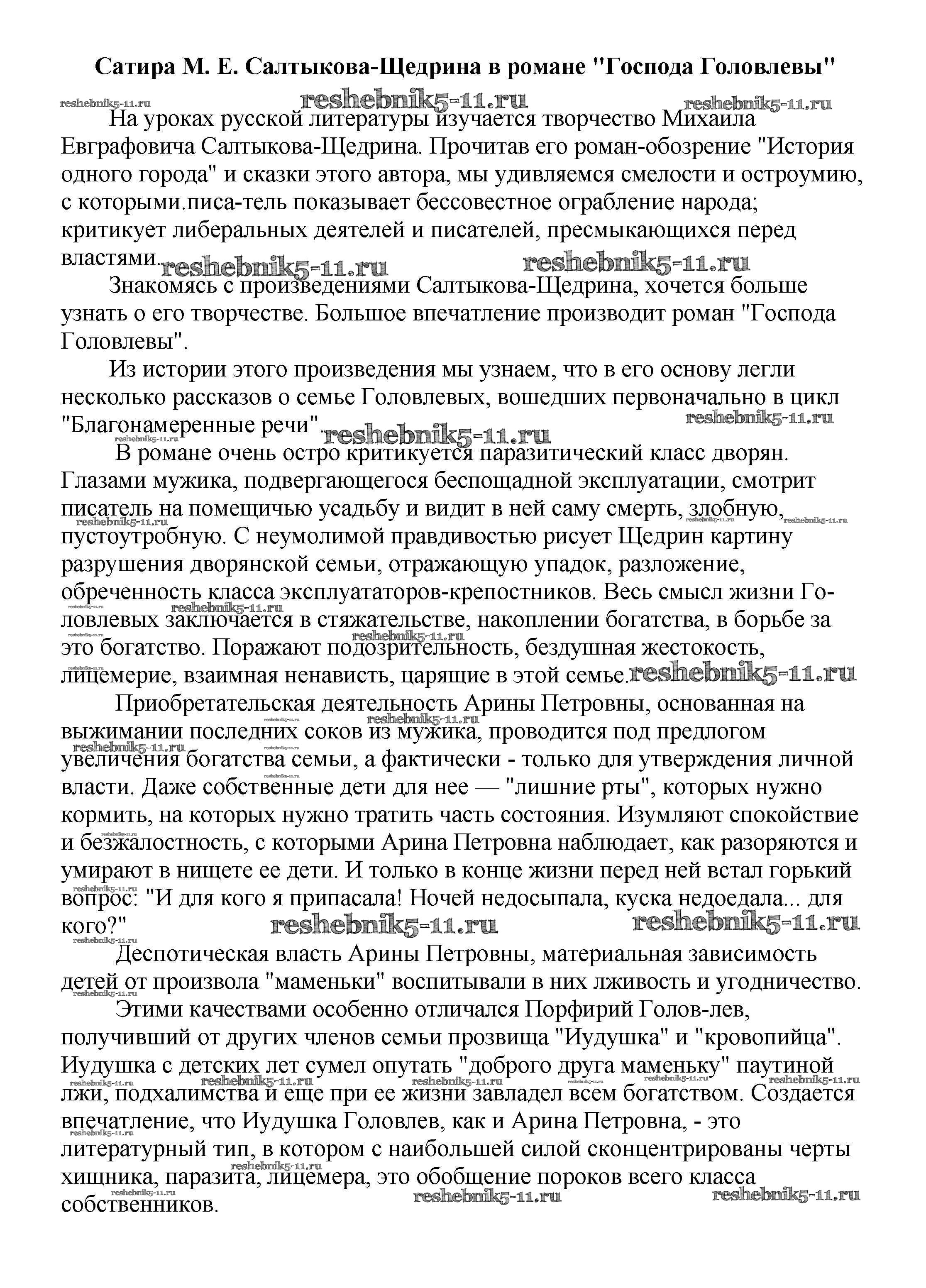 Готовая домашняя работа с ответами по Литературе за 5, 6, 7, 8, 9, 10 класс Белик, Музычук Сочинения Баро-Пресс 2017 - Сочинения по русской литературе Сатира М. Е. Салтыкова-Щедрина в романе "Господа Головлевы"
