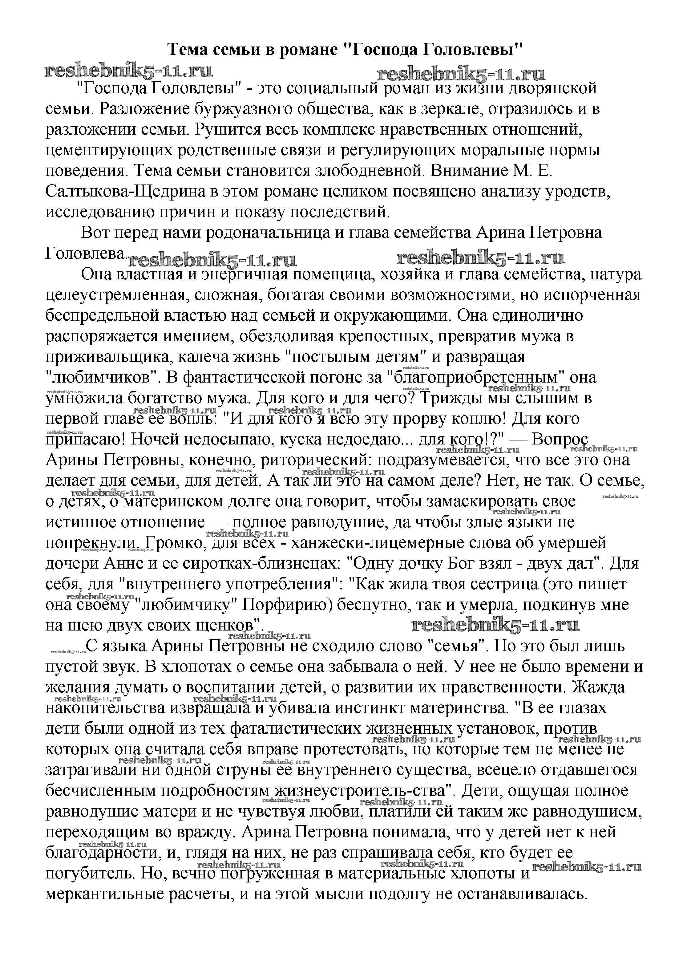 Готовая домашняя работа с ответами по Литературе за 5, 6, 7, 8, 9, 10 класс Белик, Музычук Сочинения Баро-Пресс 2017 - Сочинения по русской литературе Тема семьи в романе "Господа Головлевы"