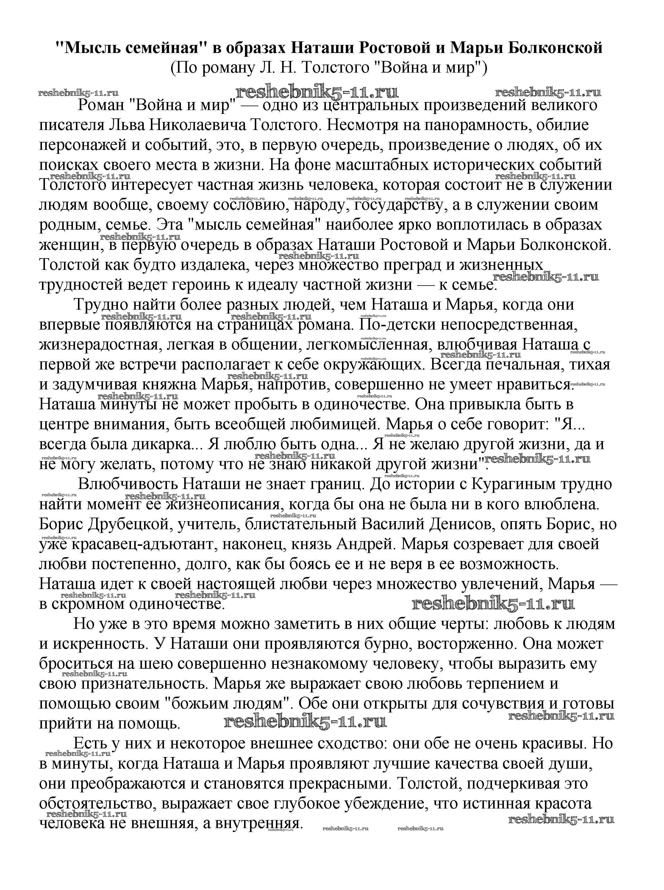 Готовая домашняя работа с ответами по Литературе за 5, 6, 7, 8, 9, 10 класс Белик, Музычук Сочинения Баро-Пресс 2017 - Сочинения по русской литературе "Мысль семейная" в образах Наташи Ростовой и Марьи Болконской (По роману Л. Н. Толстого "Война и мир")