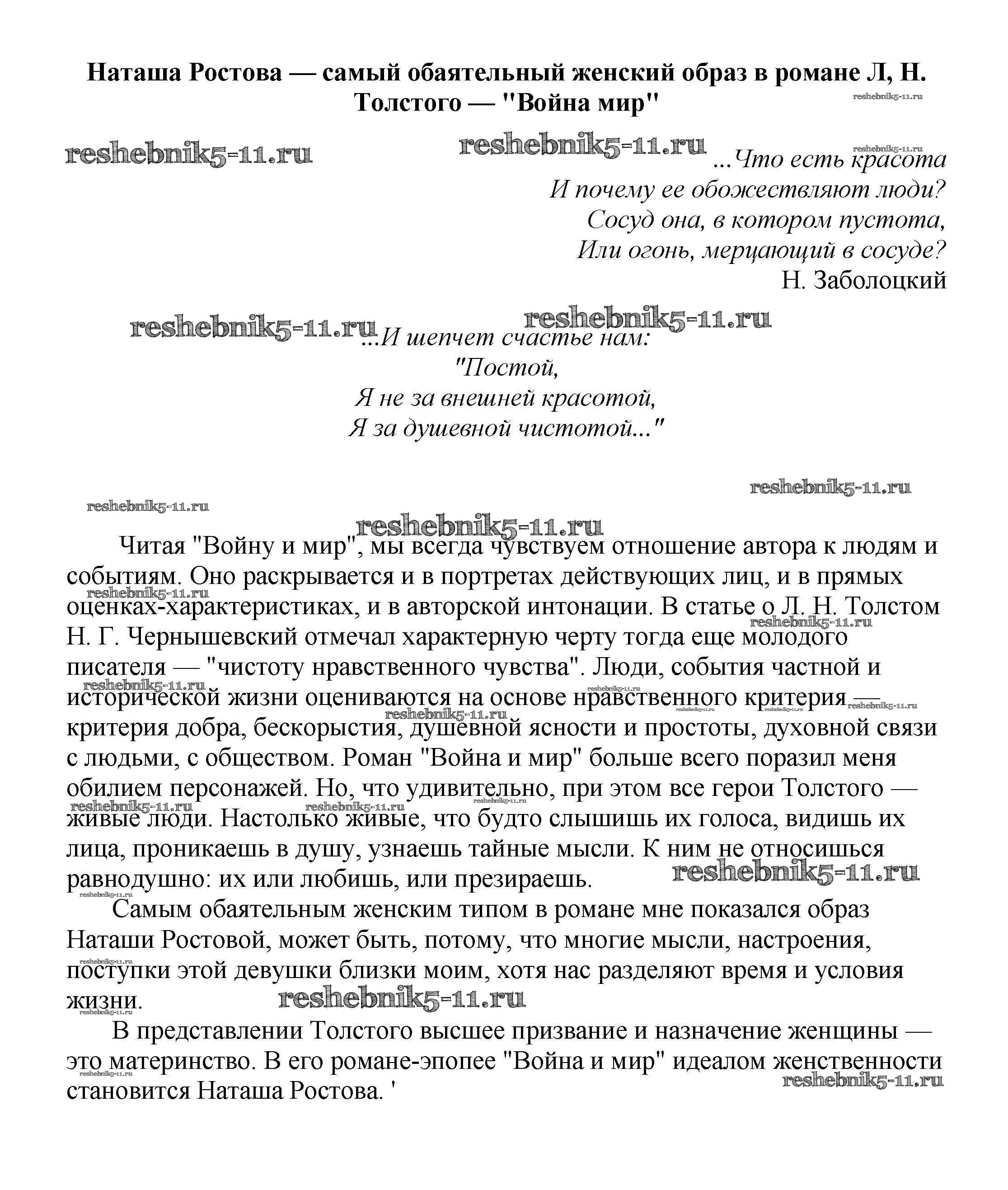 Решебник / 10 класс / сочинения по русской литературе / Наташа Ростова — самый обаятельный женский образ в романе Л, Н. Толстого — "Война мир"