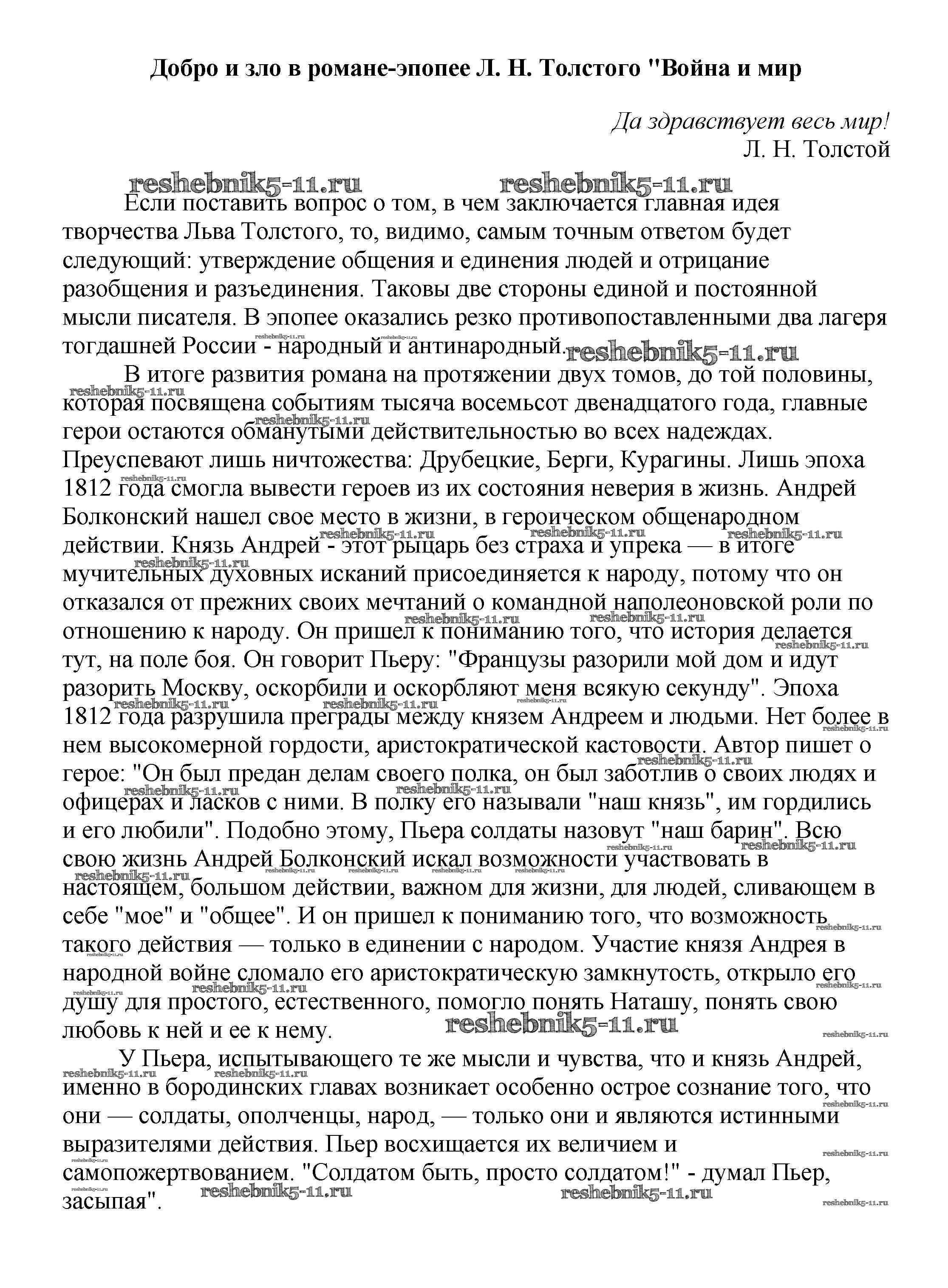Готовая домашняя работа с ответами по Литературе за 5, 6, 7, 8, 9, 10 класс Белик, Музычук Сочинения Баро-Пресс 2017 - Сочинения по русской литературе Добро и зло в романе-эпопее Л. Н. Толстого "Война и мир