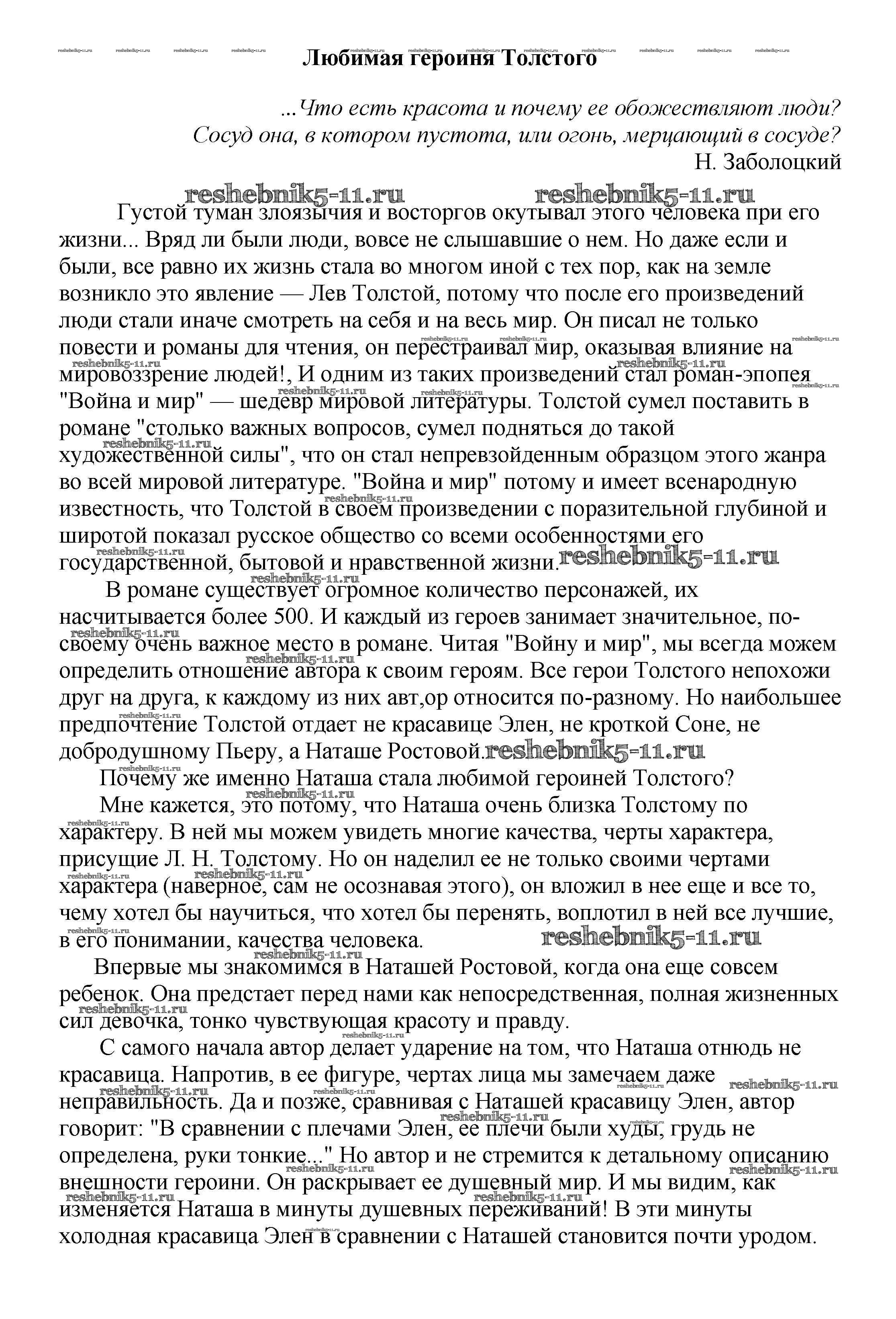 Готовая домашняя работа с ответами по Литературе за 5, 6, 7, 8, 9, 10 класс Белик, Музычук Сочинения Баро-Пресс 2017 - Сочинения по русской литературе Любимая героиня Толстого